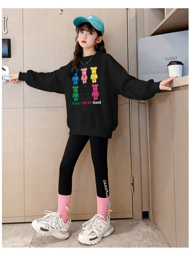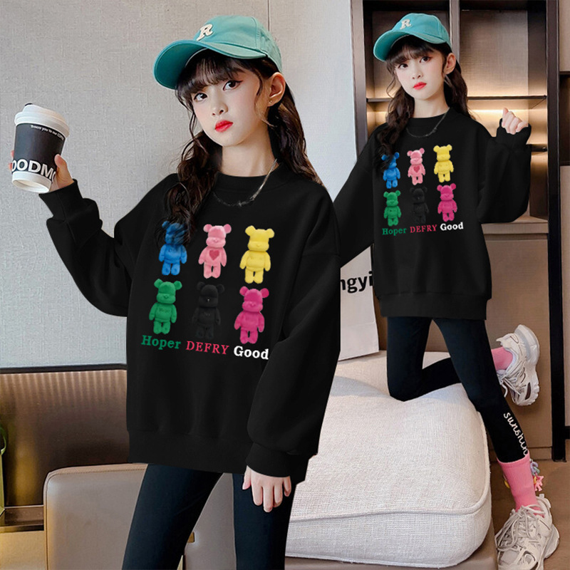 Zhongda 여아 스웨터 만화 인쇄 새로운 봄과 가을 기모 유행 느슨한 한국 스타일 서양 스타일 기본 셔츠 탑
