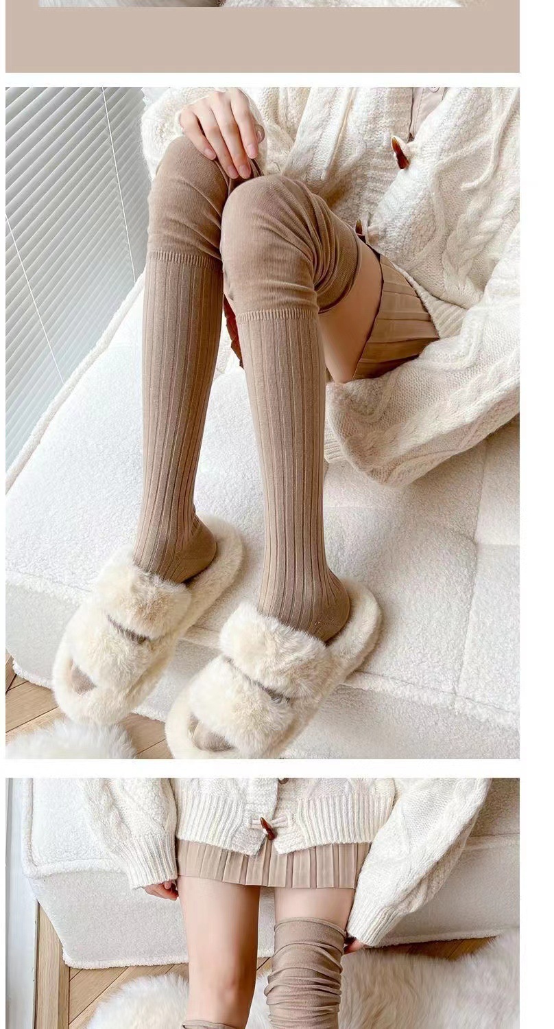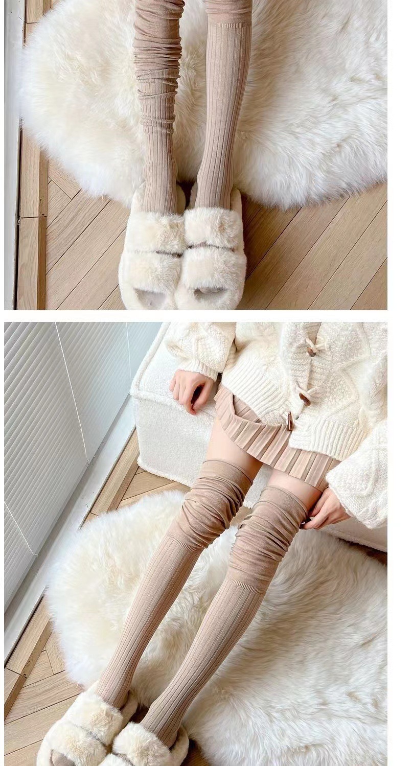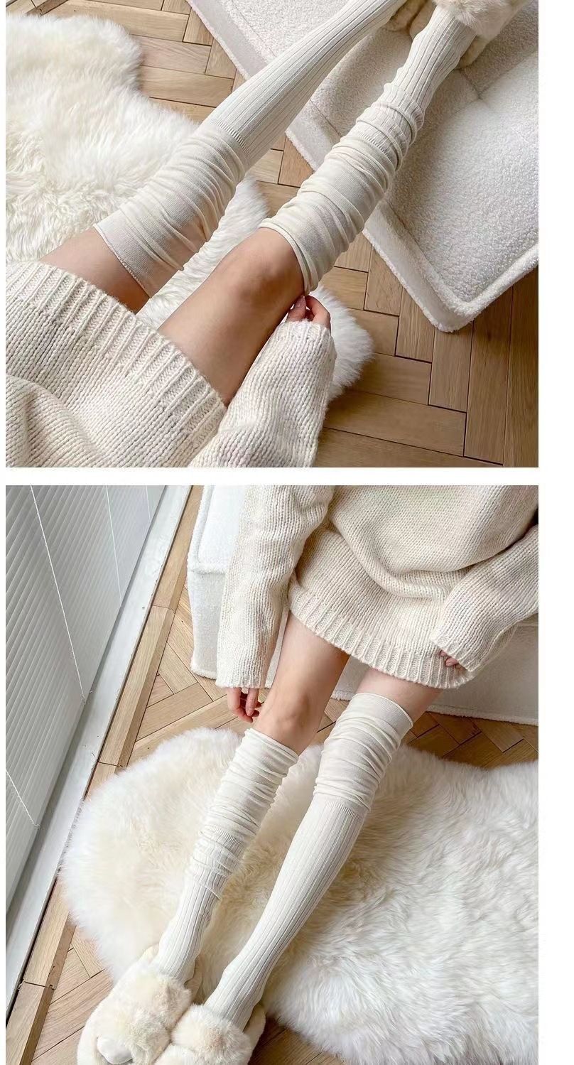 가을 겨울용 밀크 화이트 롱삭스 여성용 카키색 하이삭스 베이지색 허벅지 양말 무릎 위 양말 랩스타일 양말 다용도