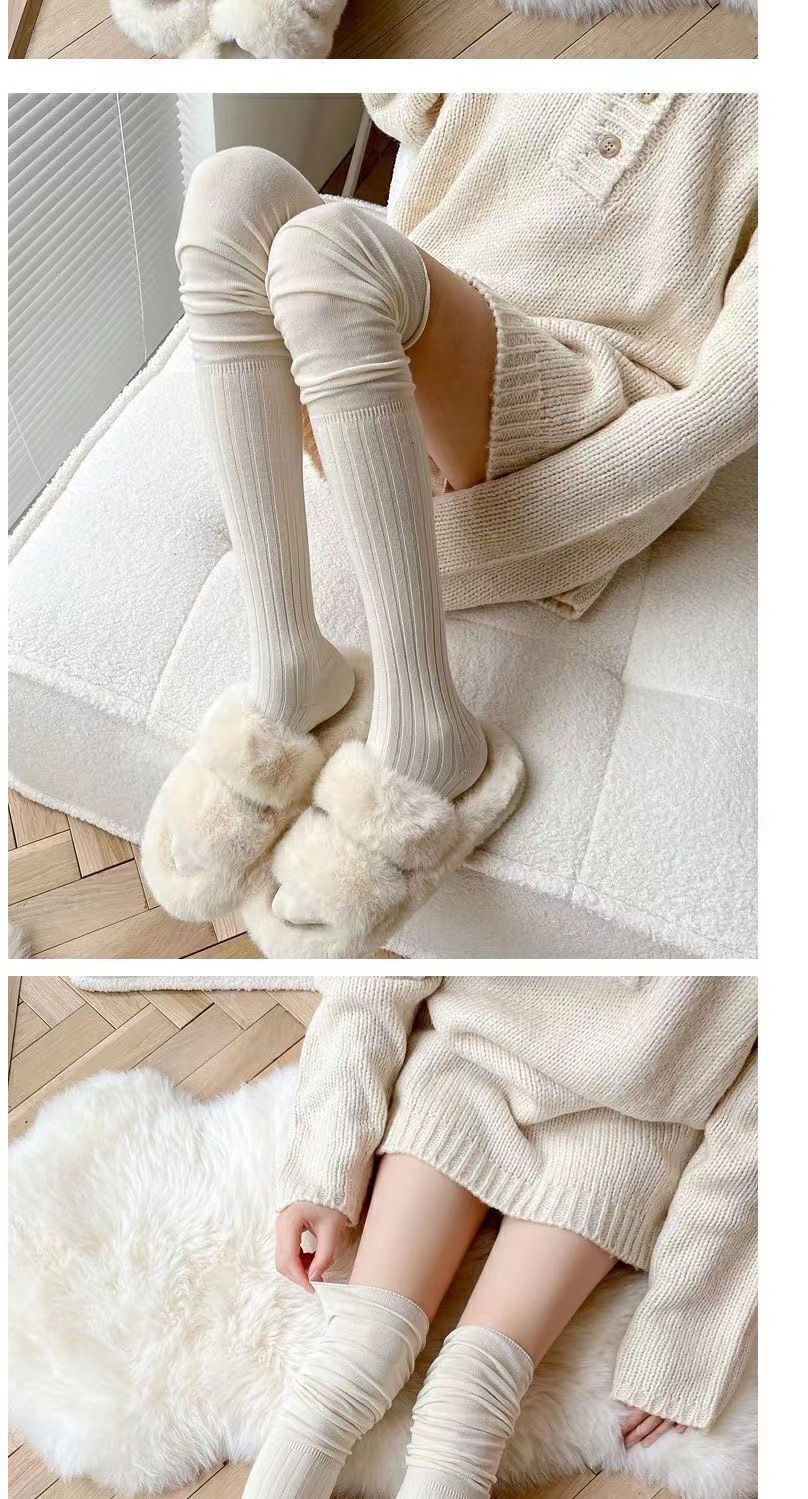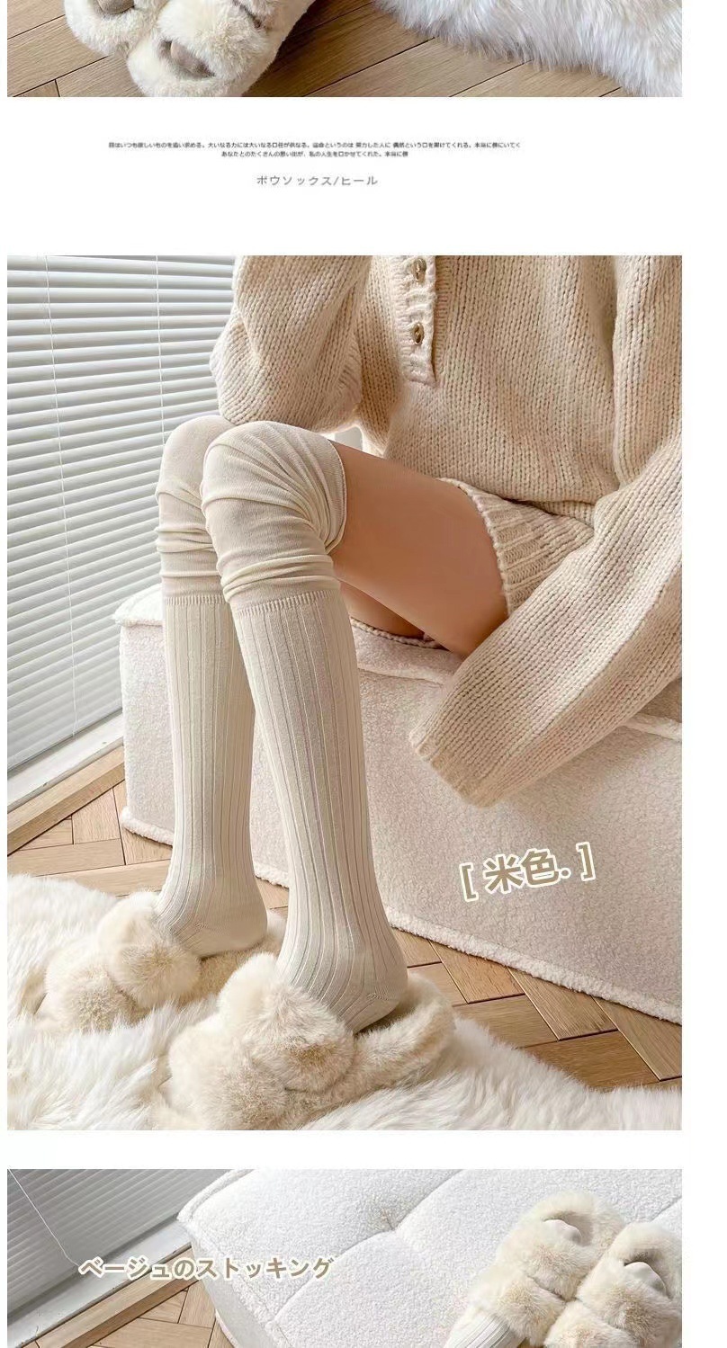 가을 겨울용 밀크 화이트 롱삭스 여성용 카키색 하이삭스 베이지색 허벅지 양말 무릎 위 양말 랩스타일 양말 다용도스토어 가기