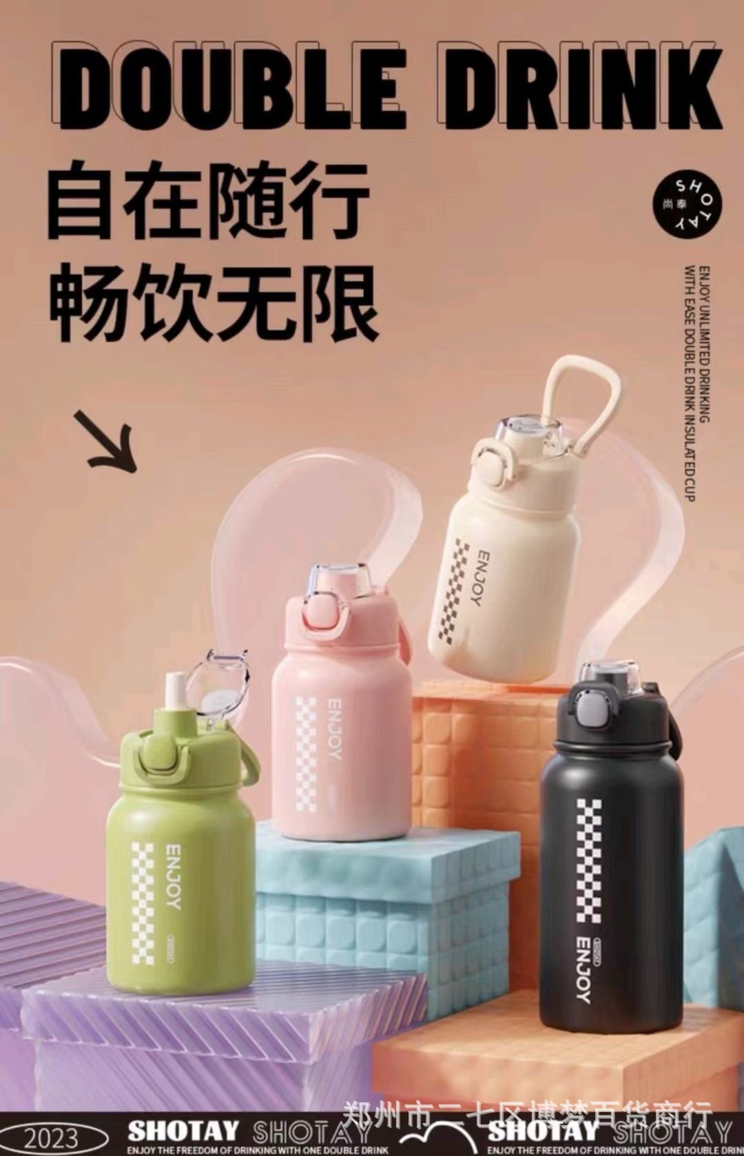 샹타이 물컵 대용량 진공 304 스테인리스 보온병 컵 빨대 컵 휴대 사무실 가정 도매스토어 가기