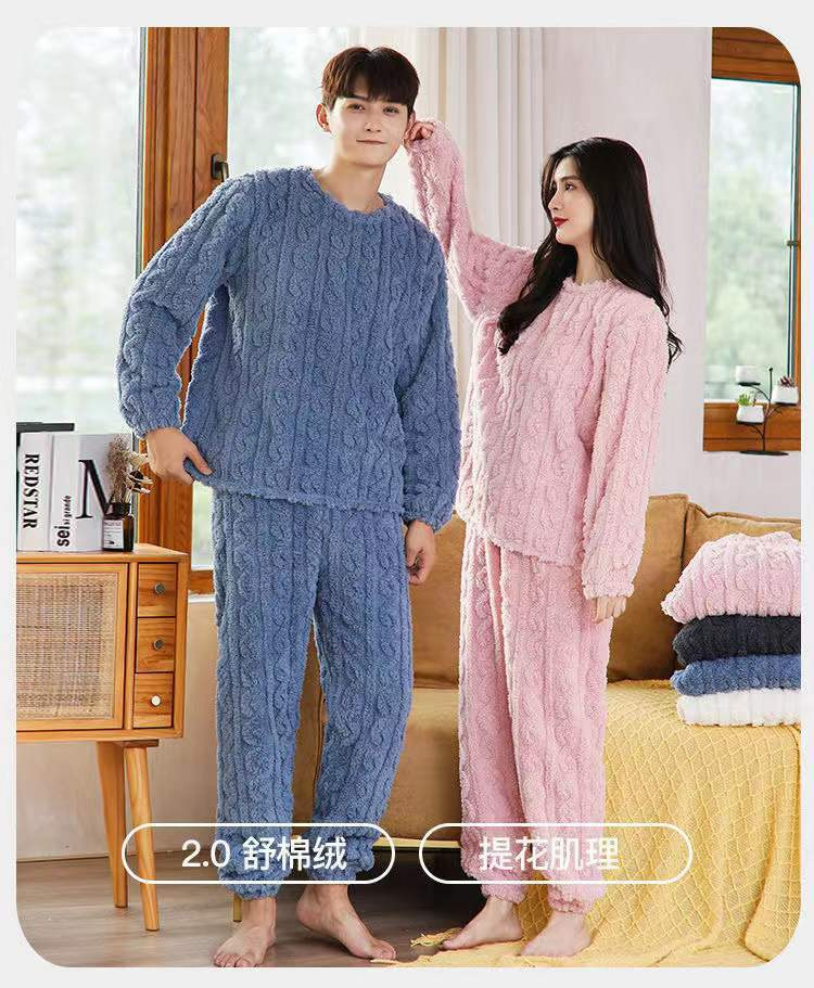 2023 겨울 새로운 단색 자카드 면 벨벳 따뜻한 세트 잠옷 가정 옷 여자의 따뜻한 두꺼운 커플 옷