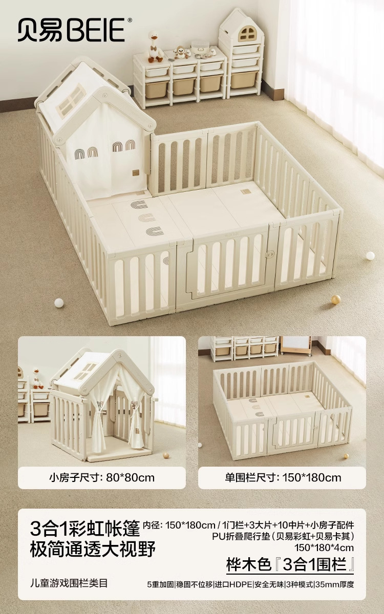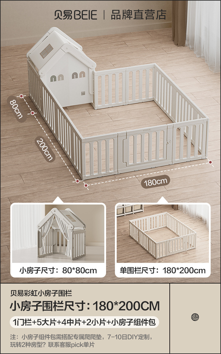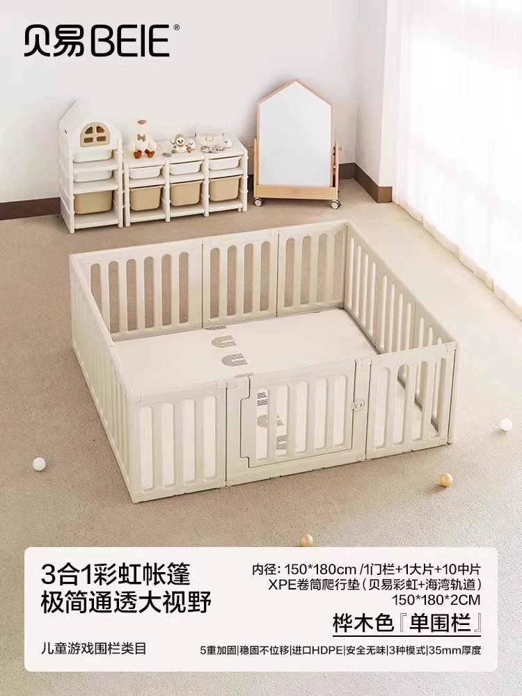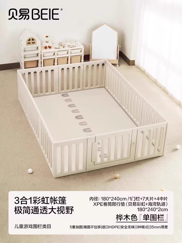 • 단일 울타리 180*240 자작나무 색상 + 4cm 두께의 PU 크롤링 매트(미끄럼 방지 PE 라이너)