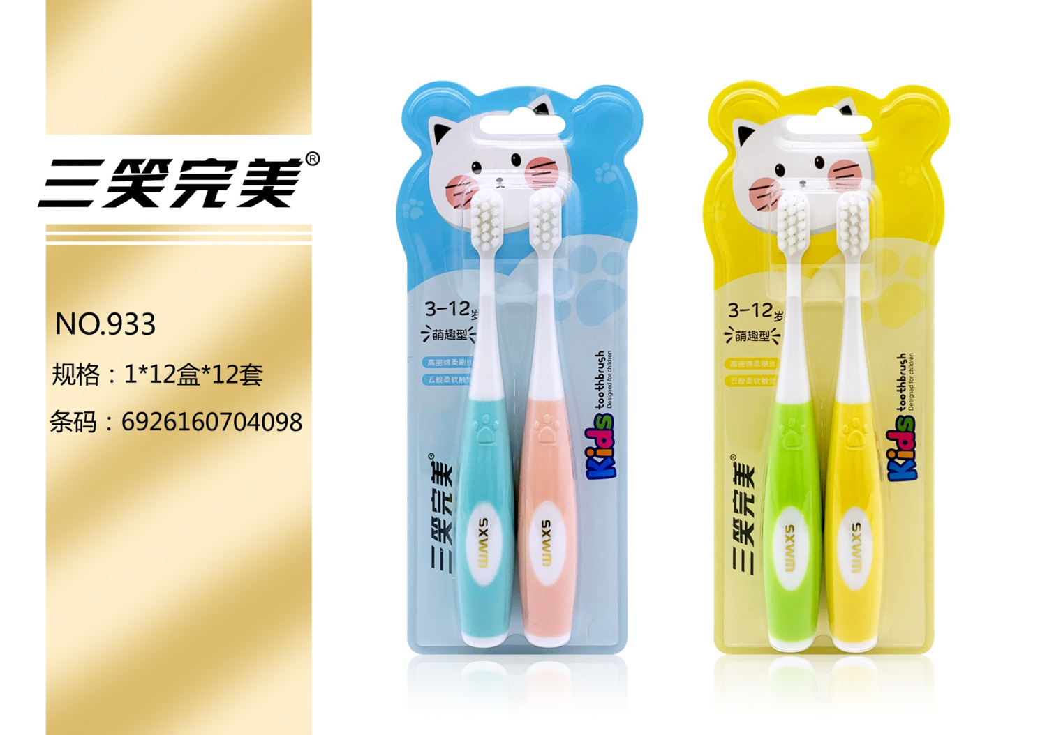 세 웃음 완벽한 시니어 어린이 아기 칫솔 부드러운 머리 잇몸 미끄럼 방지 핸들 슈퍼마켓 백화점 도매 공장 정품