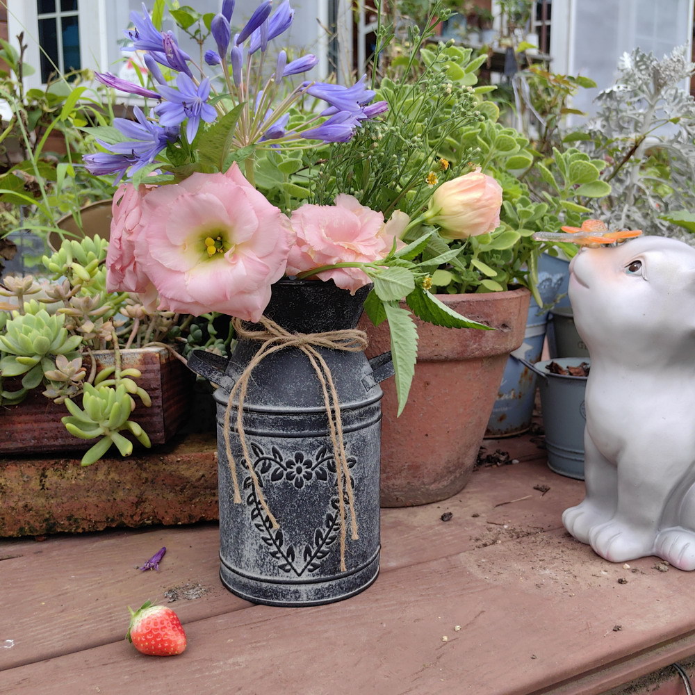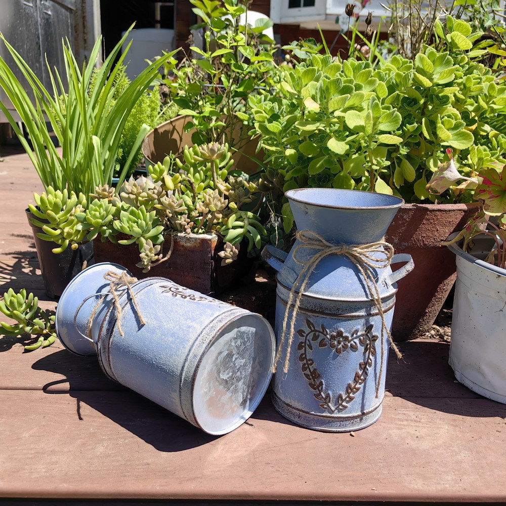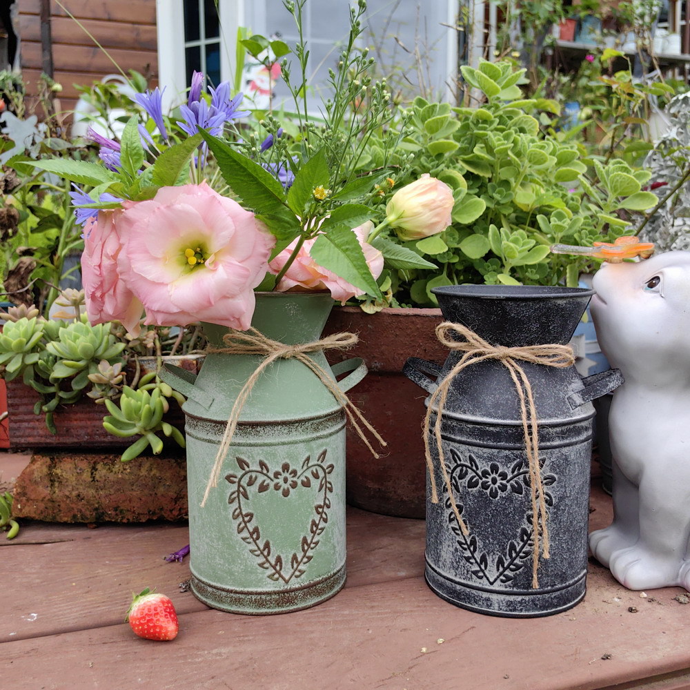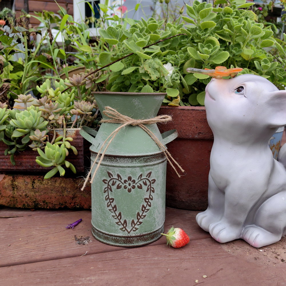 Youmei 빈티지 거친 잎 우유 냄비 철공 꽃 장식 꽃 냄비 꽃 양동이 금속 공예 장식품