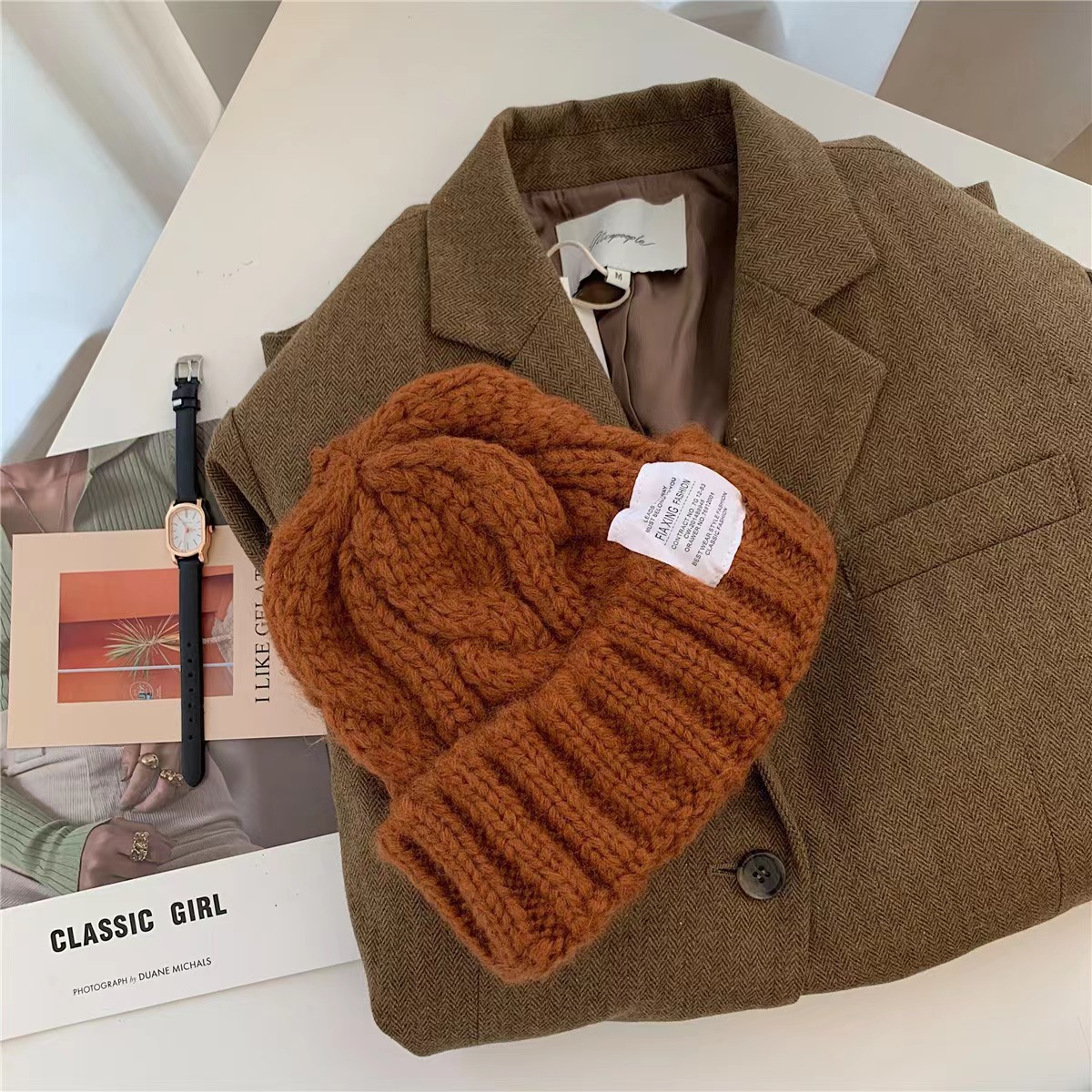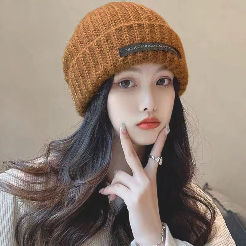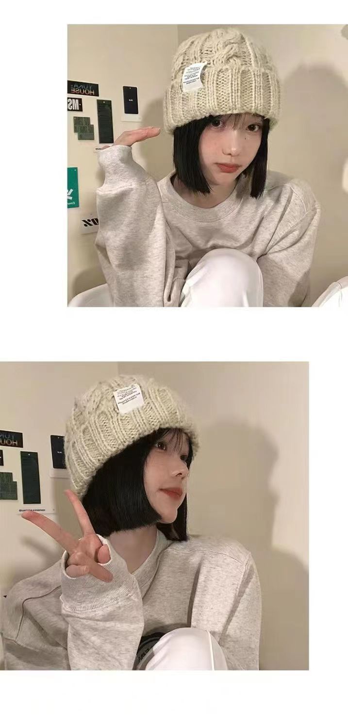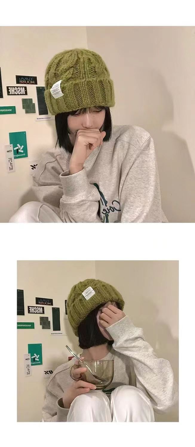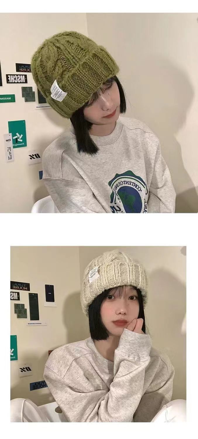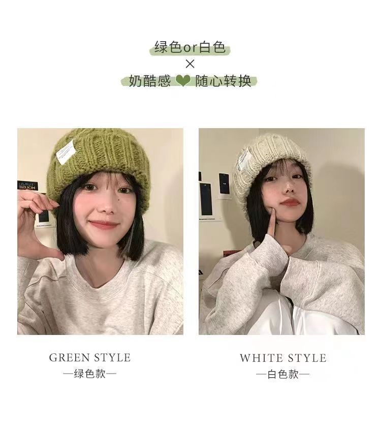 2023 모자 여자의 두꺼운 니트 양모 모자 가을과 겨울 모든 경기 큰 머리 녹색 느슨한 Instagram 스타일 유행 작은 얼굴스토어 가기