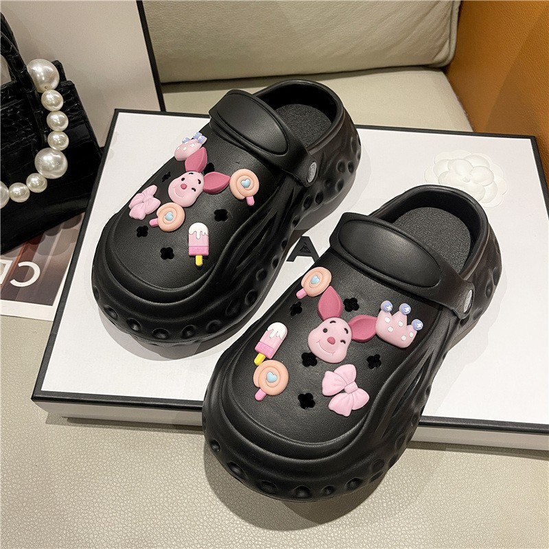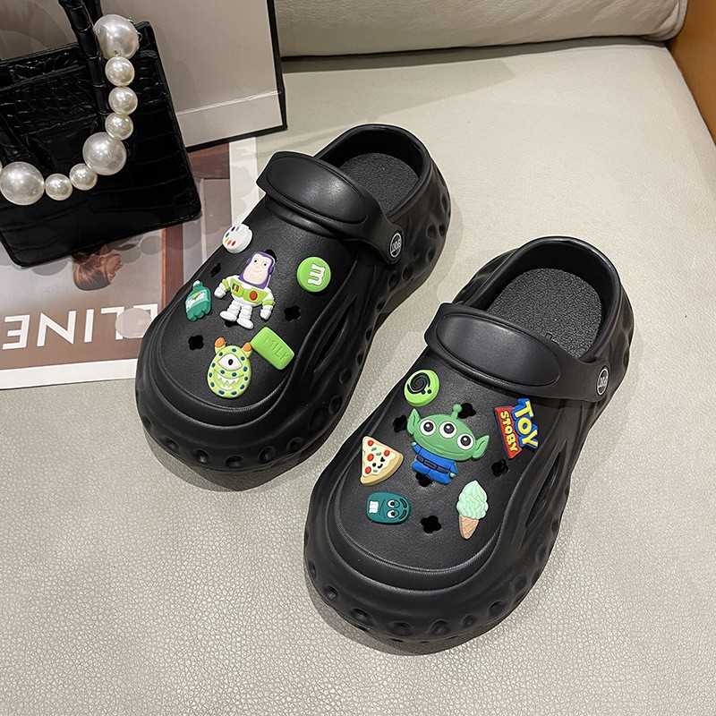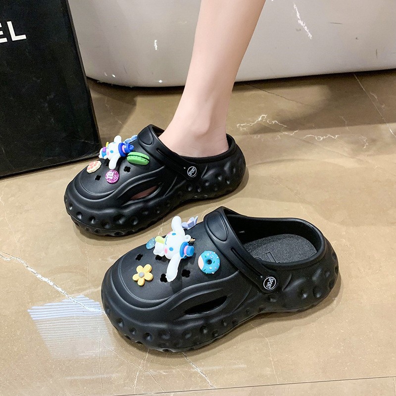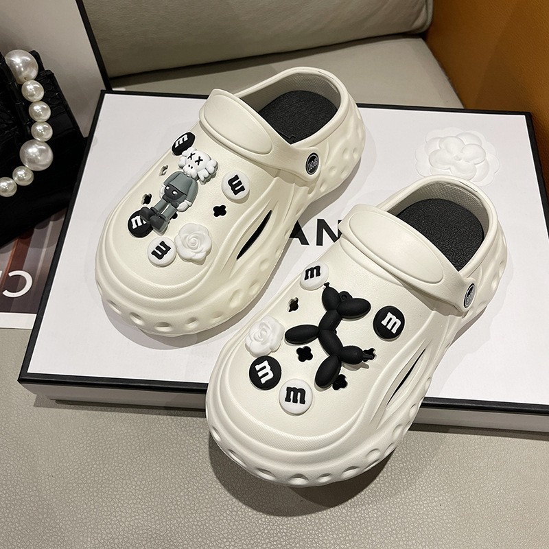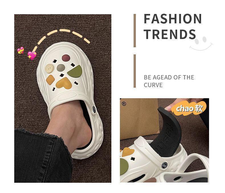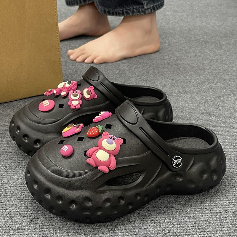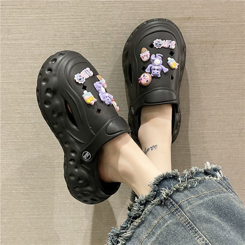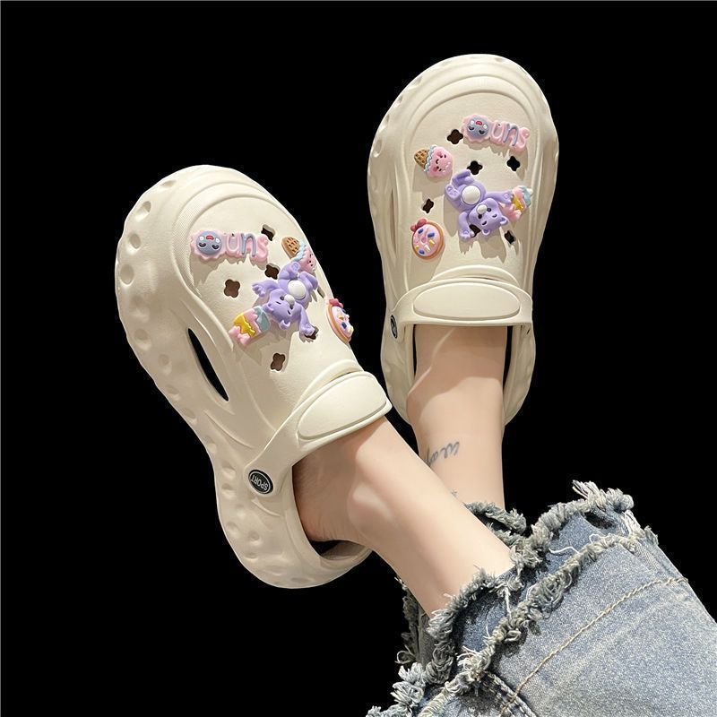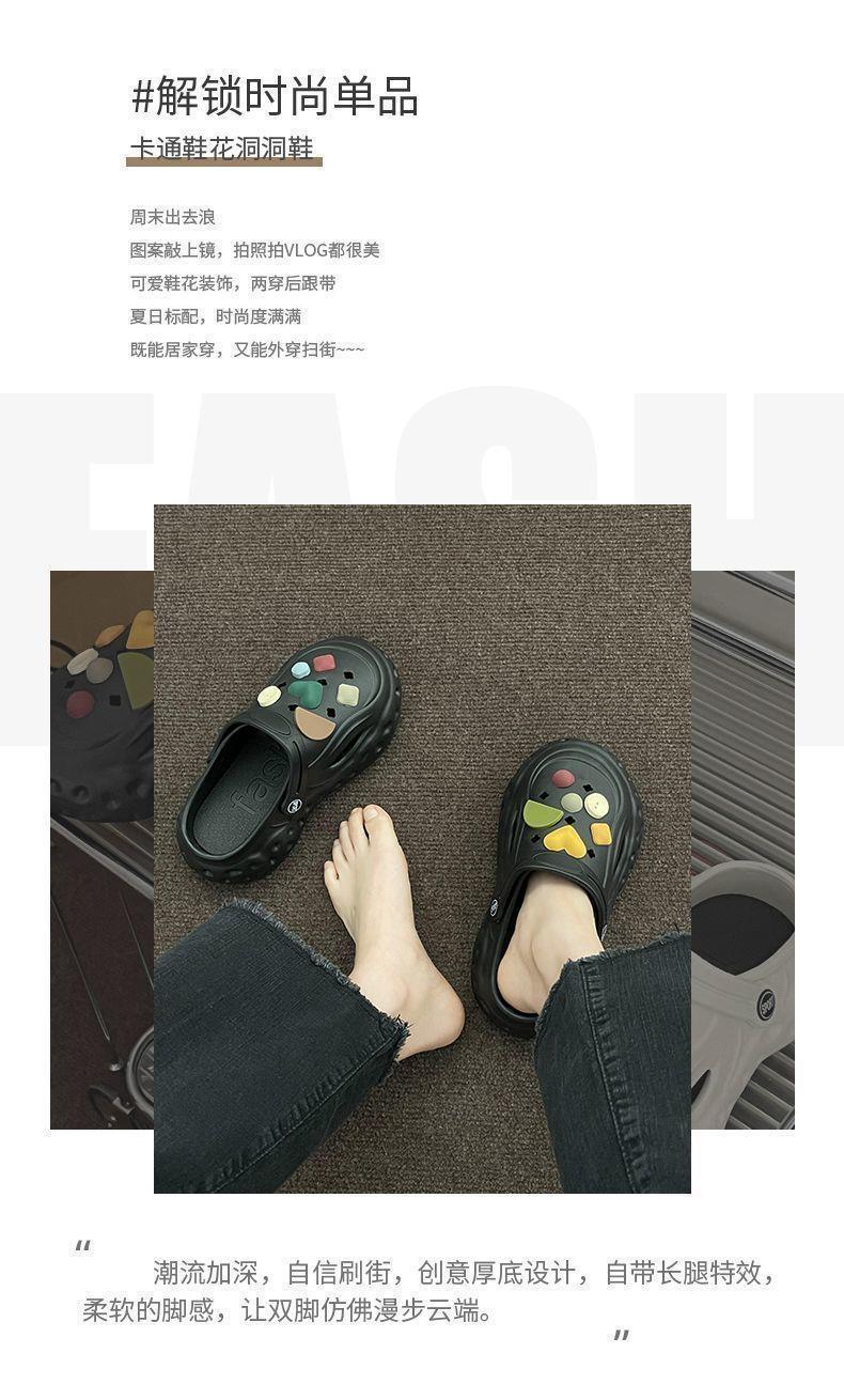 스폰지 밥 스퀘어 팬츠 슬리퍼 여성용 겉옷 페인트 만화 구멍 신발 태양 방지 내마모성 두꺼운 밑창 샌들 및 슬리퍼