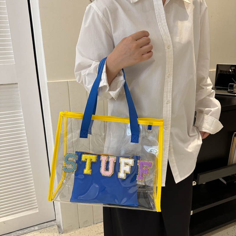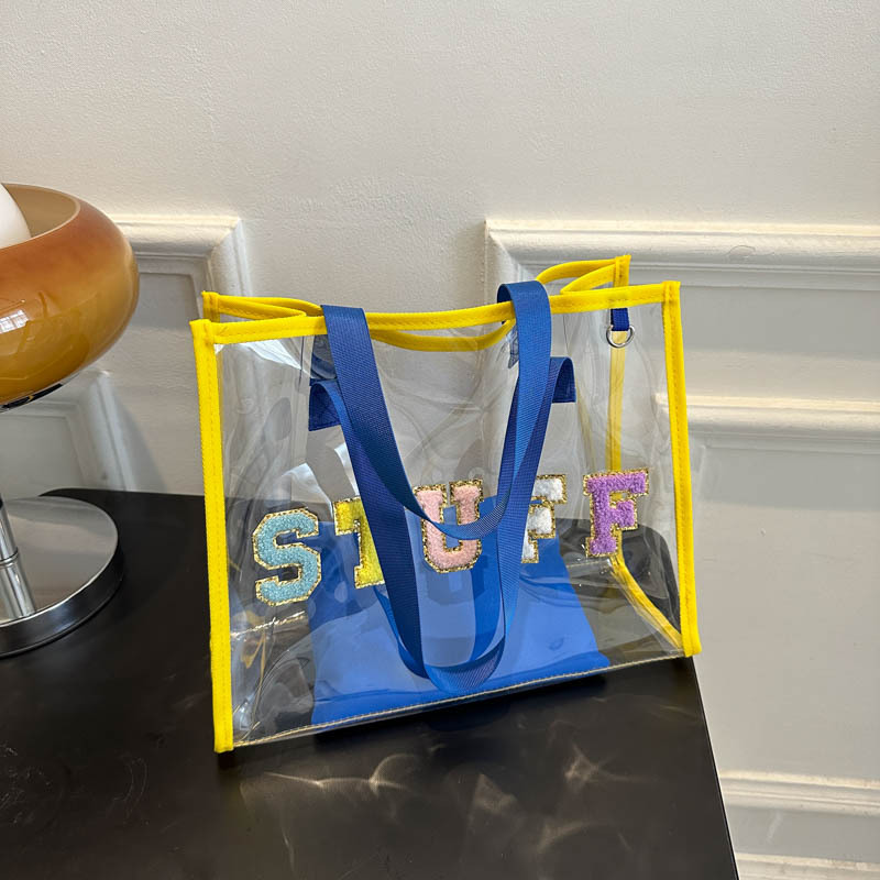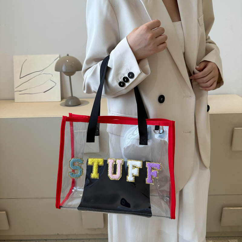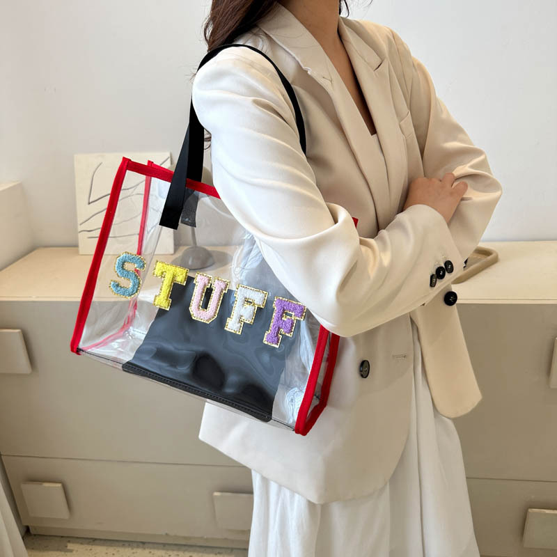 새로운 자수 편지 PVC 투명 핸드백 대용량 거리 패션 숄더백 야외 휴대용 견인 가방