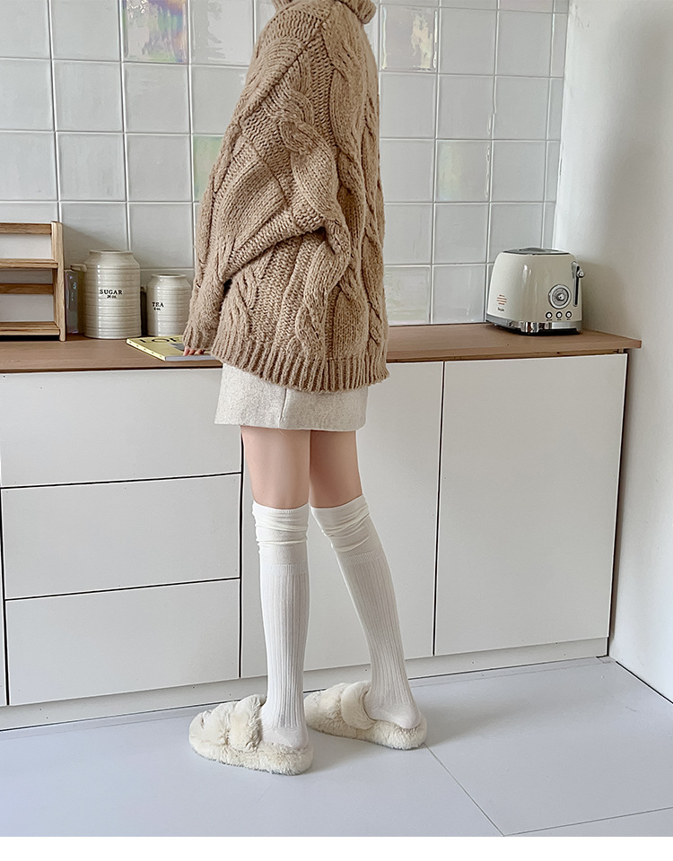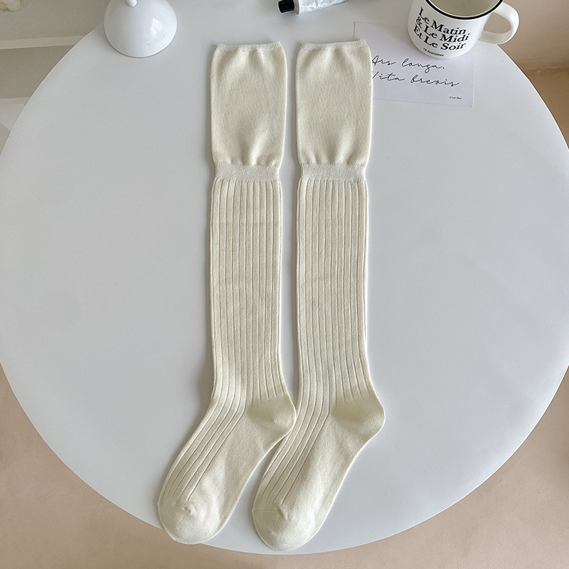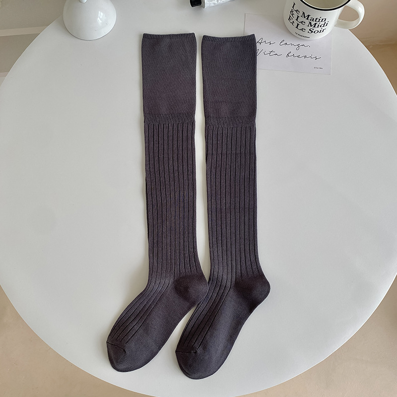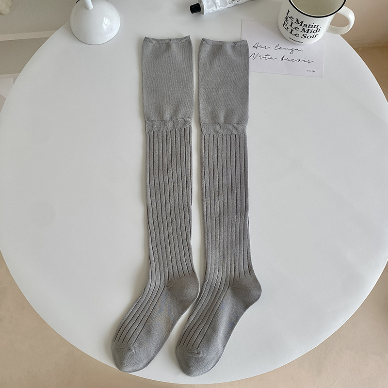 무릎 위 양말 디자인 분할 된 얇은 가을과 겨울 높은 양말 부츠 여성용 단색 긴 튜브면 양말 New스토어 가기