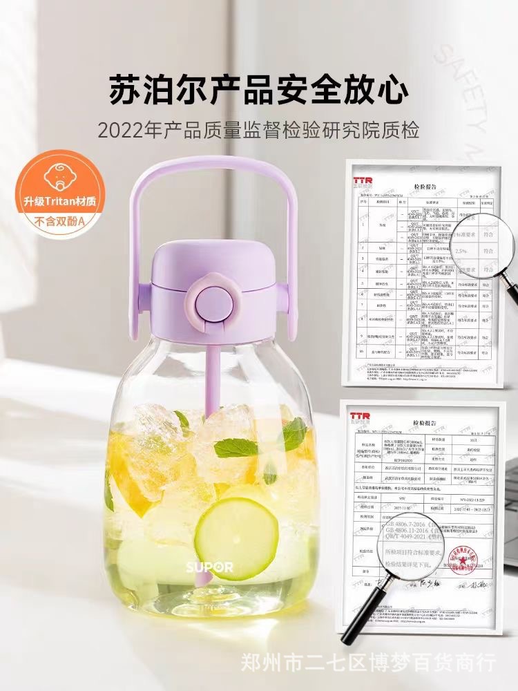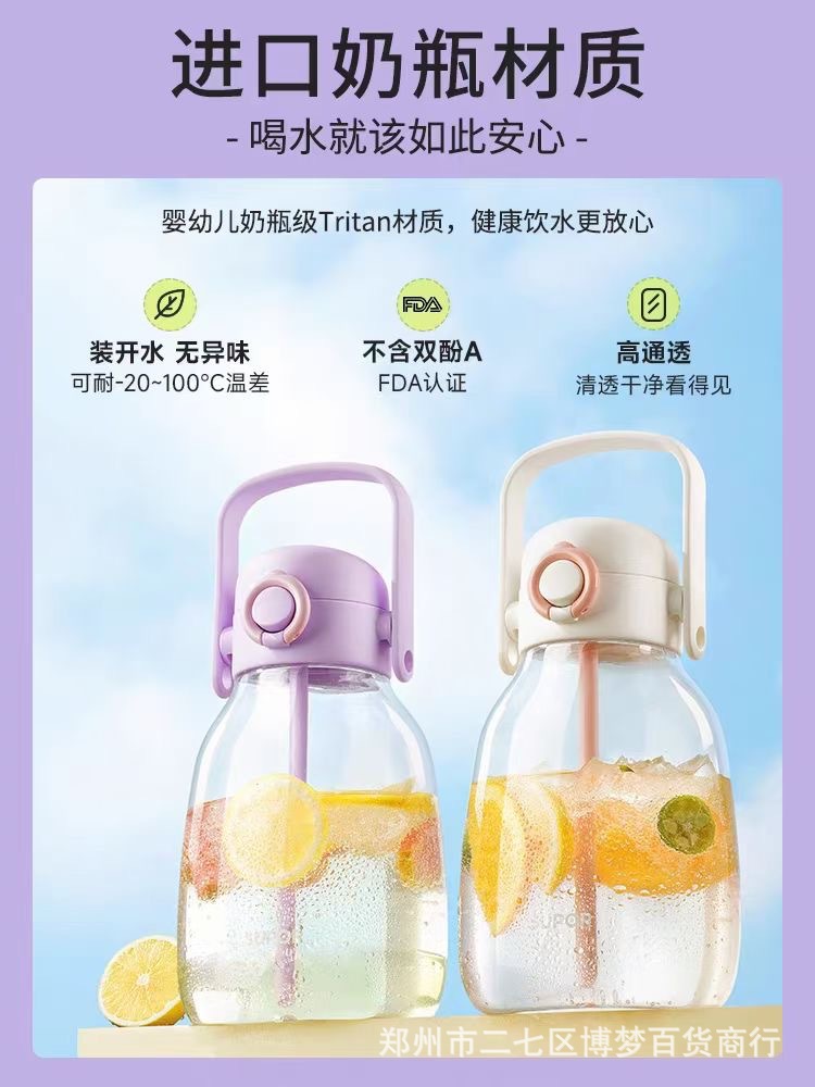 Supor 물 컵 밀짚 스트랩 큰 배꼽 컵 1000ml 학생 어린이 스포츠 주전자 휴대용 KCP10LD20스토어 가기