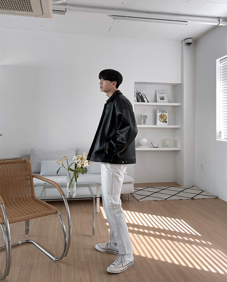 가죽 자켓 남자 봄 새로운 유행 한국 스타일 가을 PU 가죽 캐주얼 야구 유니폼 오토바이 자켓 유행스토어 가기