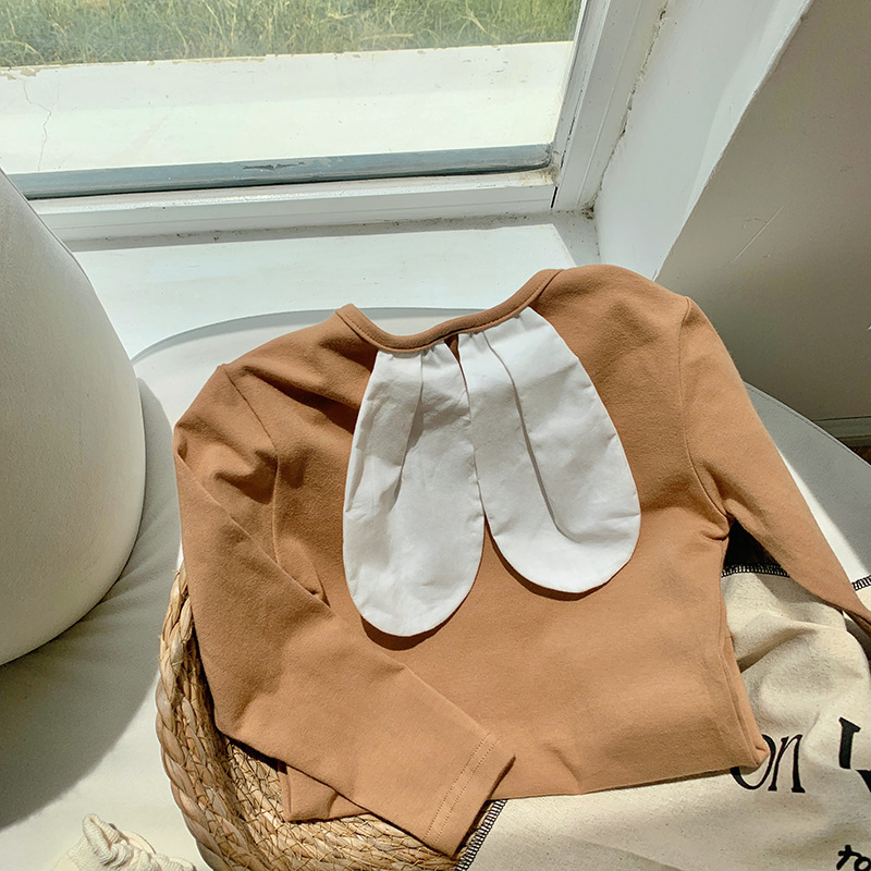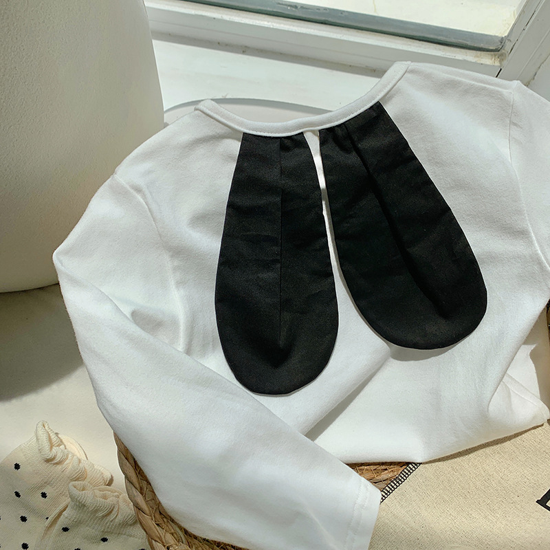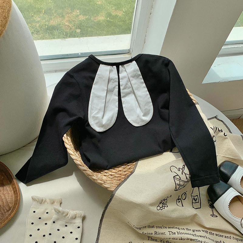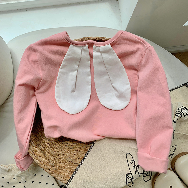 토끼귀 니트 긴팔 여아 티셔츠 2026 봄 자수 아동용 베이스 레이어 한국 스타일 아기 상의