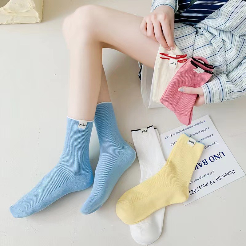 양말 여성 가을 새로운 한국 스타일 인 스타일 천 표준 요호 파일 양말 조커 단색 튜브 양말 Zhuji 도매스토어 가기
