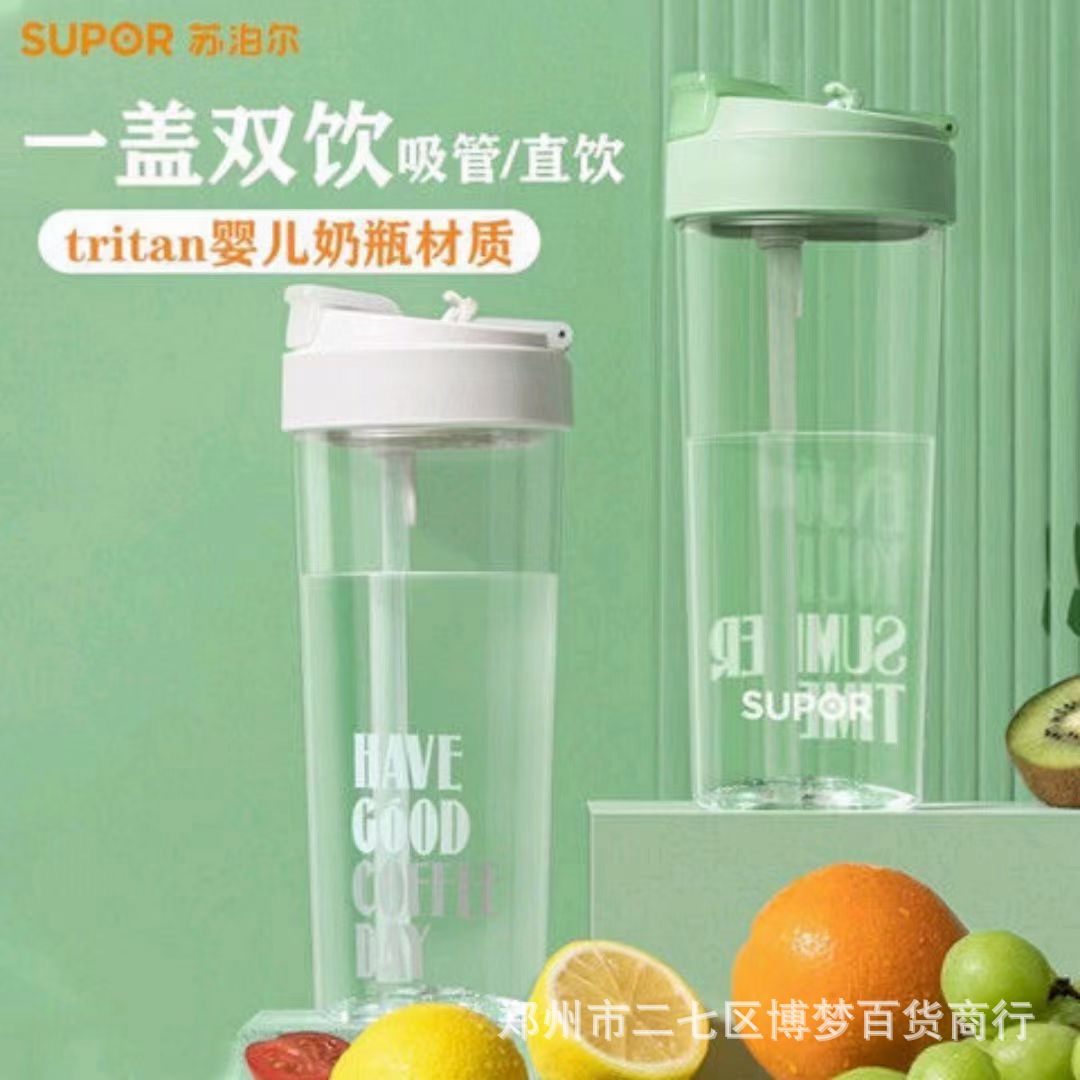 Supor 스포츠 컵 흡입 튜브 컵 소년 소녀 학생 대용량 컵 한 뚜껑 더블 음료 플라스틱 버블 음료 컵
