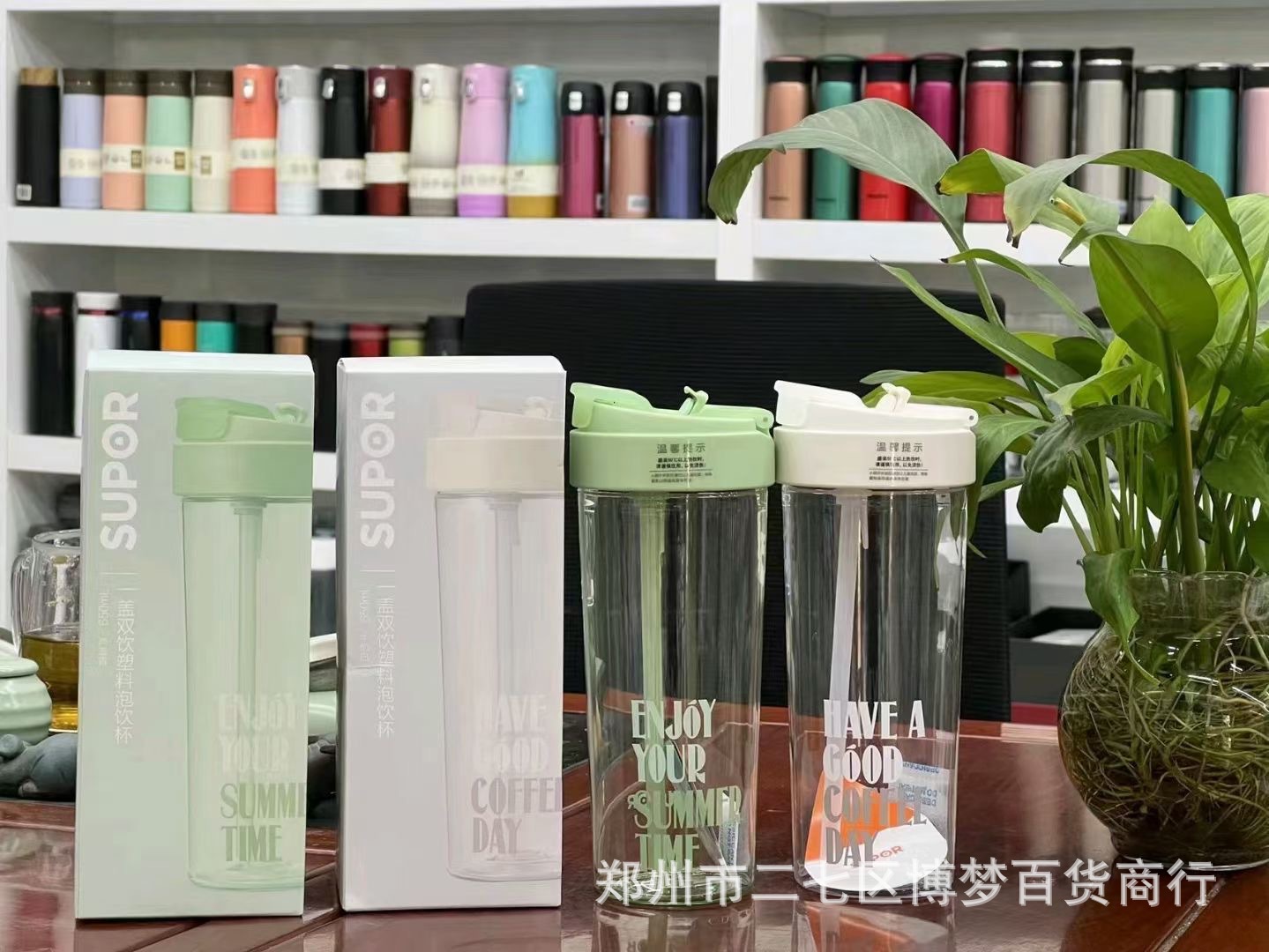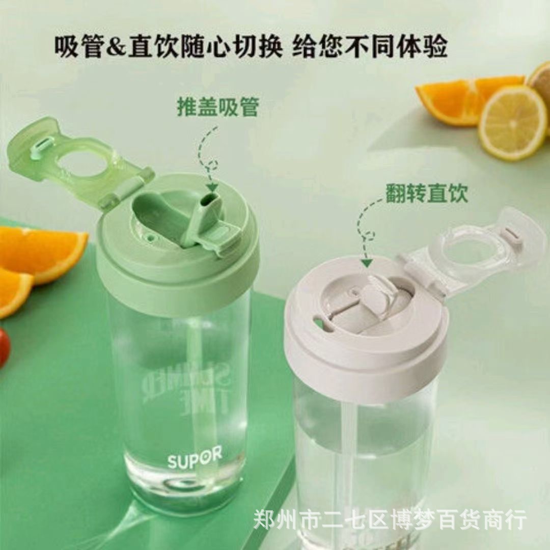 Supor 스포츠 컵 흡입 튜브 컵 소년 소녀 학생 대용량 컵 한 뚜껑 더블 음료 플라스틱 버블 음료 컵스토어 가기