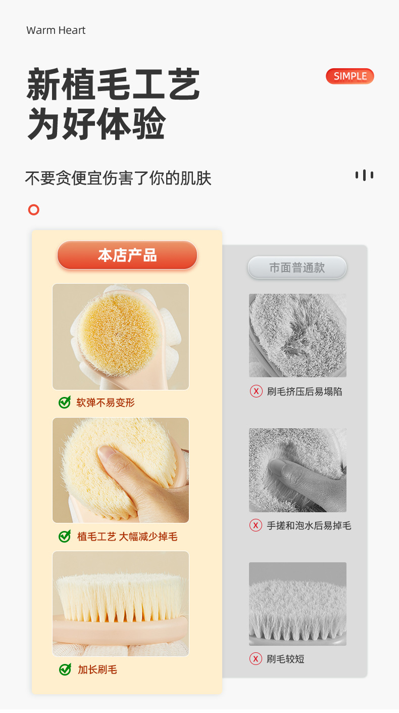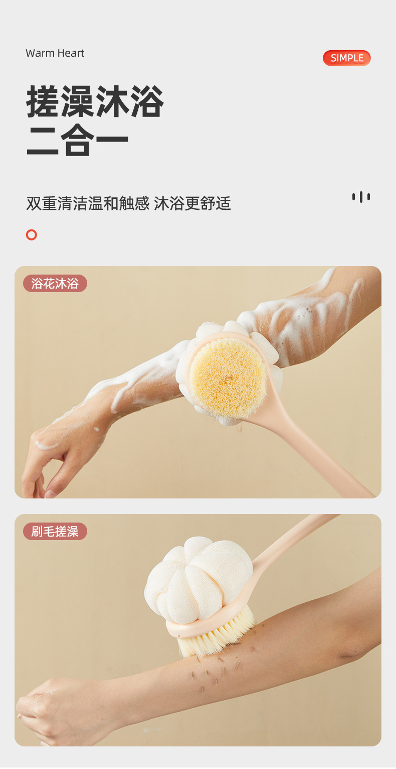 목욕 브러시 다시 문지르는 것은 긴 손잡이 브러시를 요구하지 않습니다 부드러운 머리 양면 목욕 브러시 유물 세척 브러시 진흙 재 유물을 제거