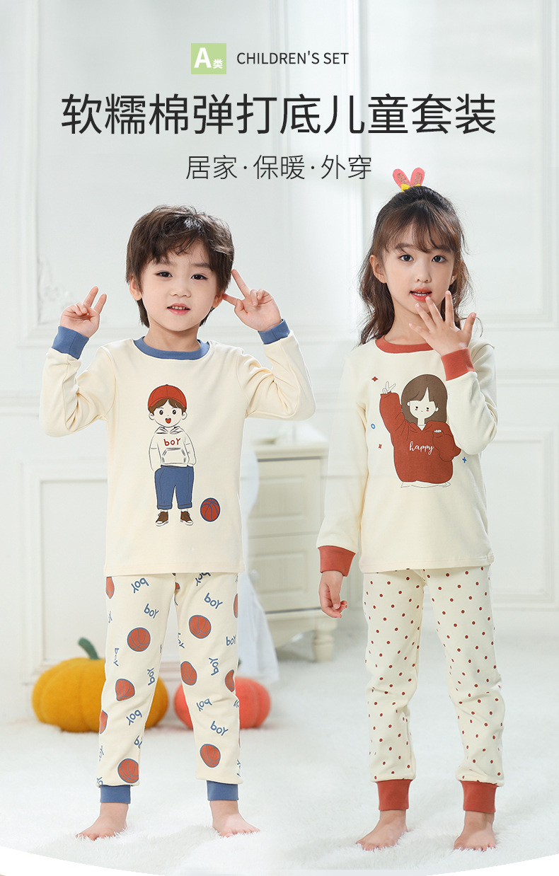 가을과 겨울 따뜻한 면화 소녀의 가을 옷과 바지 세트 어린이 잠옷 한국 만화 샌딩 소년 홈 옷스토어 가기
