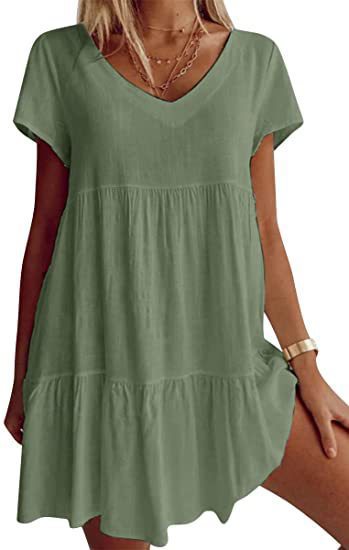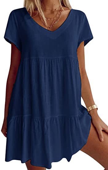 2023 새로운 재고 크로스 보더 유럽과 미국 여성 의류 아마존 폭발성 여름 느슨한 캐주얼 반팔 허리 원피스스토어 가기