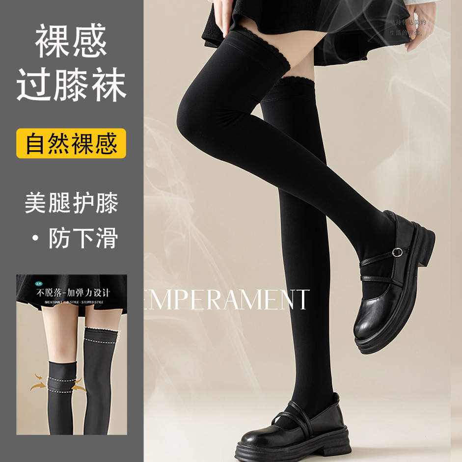 가을과 겨울 물 라이트 스타킹 무릎 압박 봄과 가을과 겨울 JK 양말 검정 반 높은 튜브 허벅지 뿌리 맨발 다리 인공물