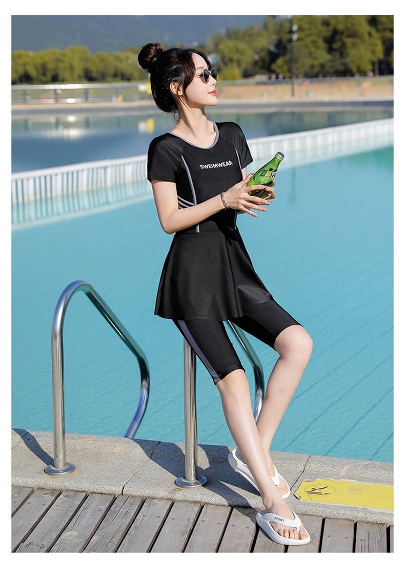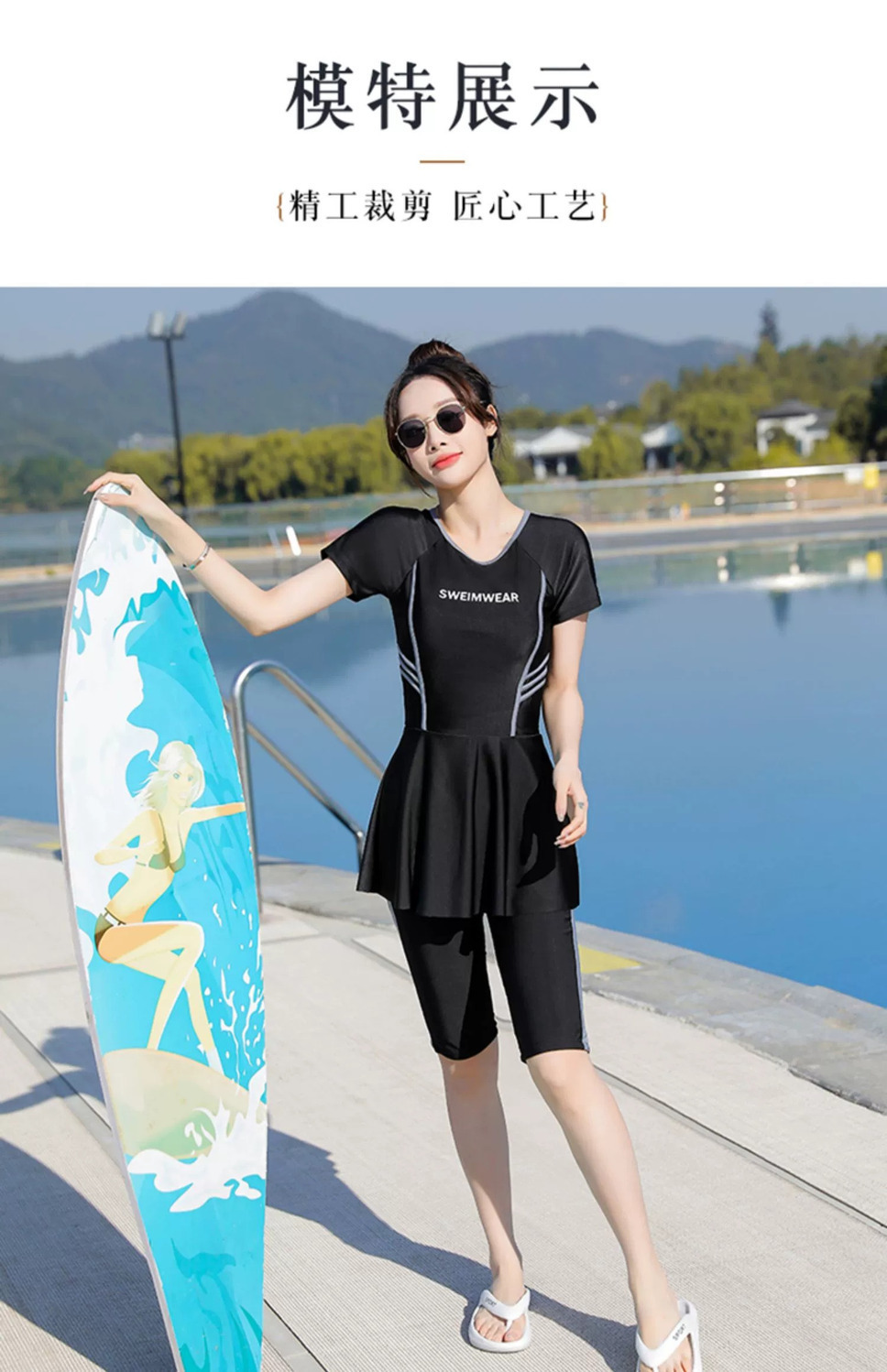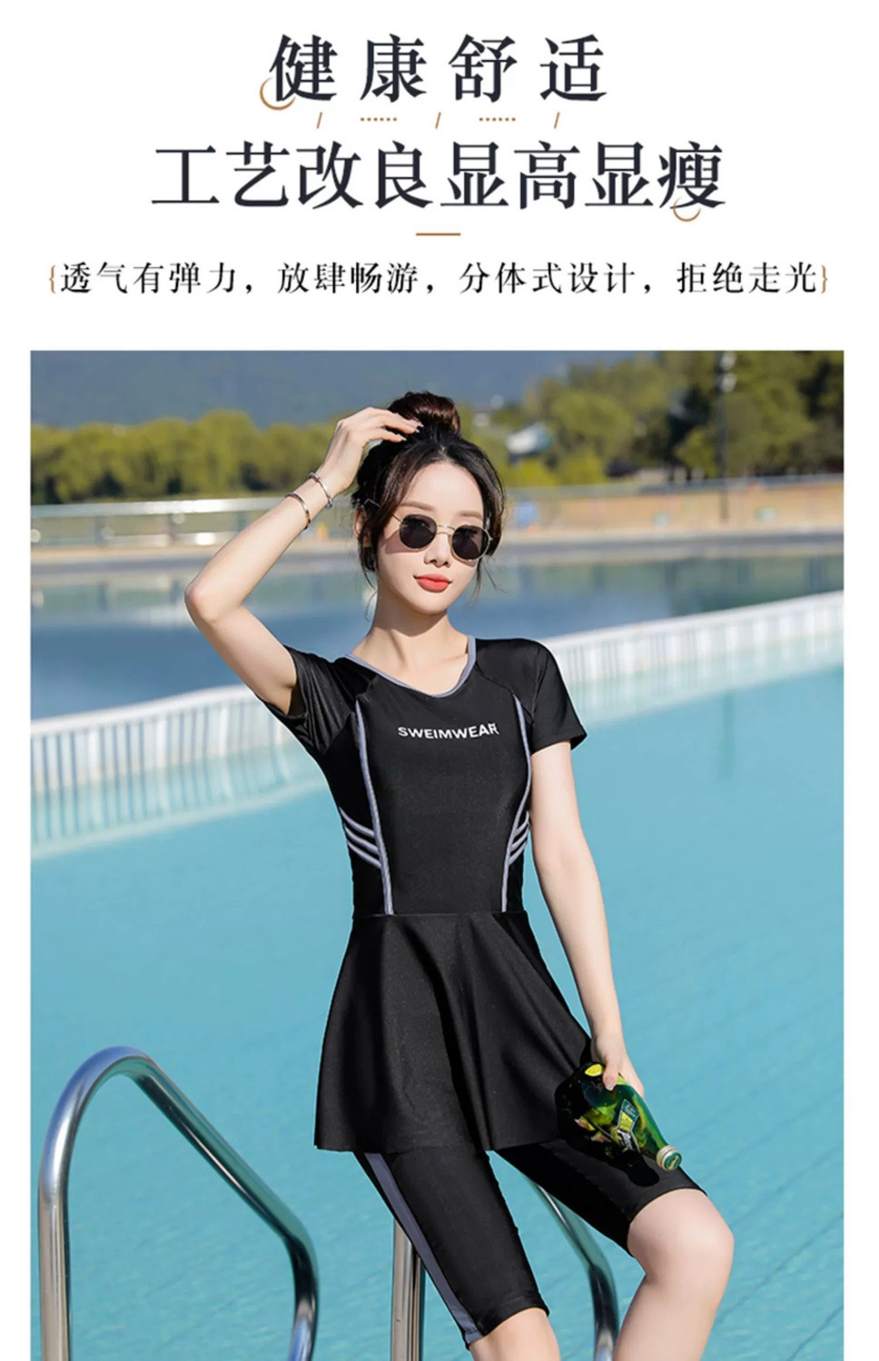 새로운 원피스 수영복 5 점 바지 안티 라이트 스플릿 스커트 수영복 여성용 신선하고 보수적 인 휴가 수영복스토어 가기