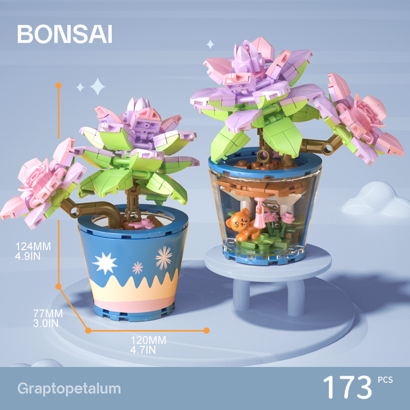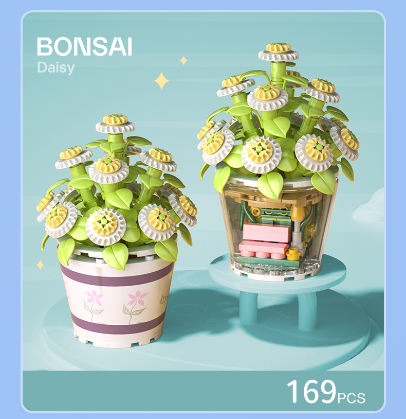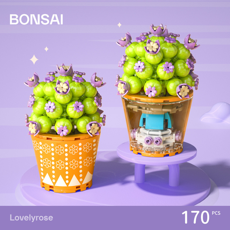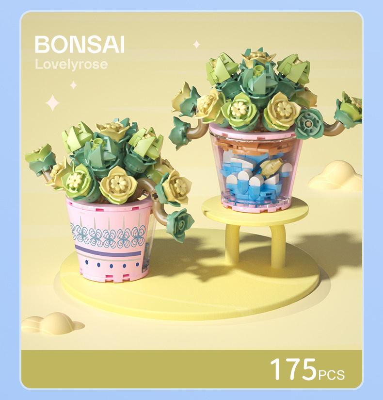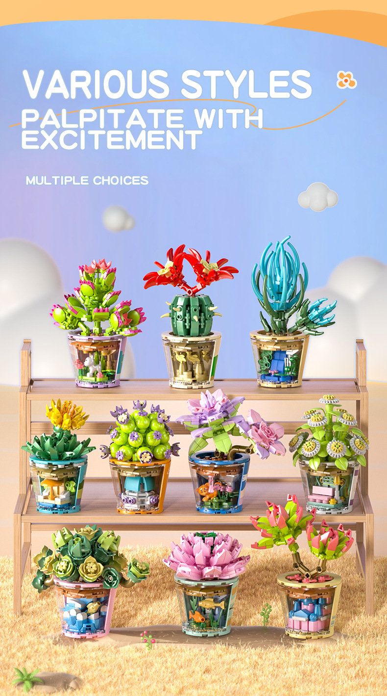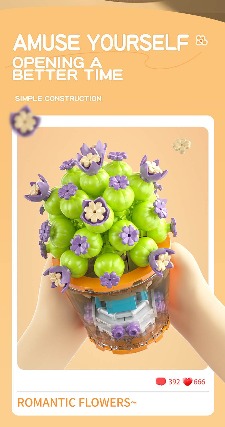 작은 입자 빌딩 블록 시뮬레이션 꽃다발 화분에 심은 소녀 유행 놀이 생일 선물 여아 장난감 교육 가정 장식품스토어 가기