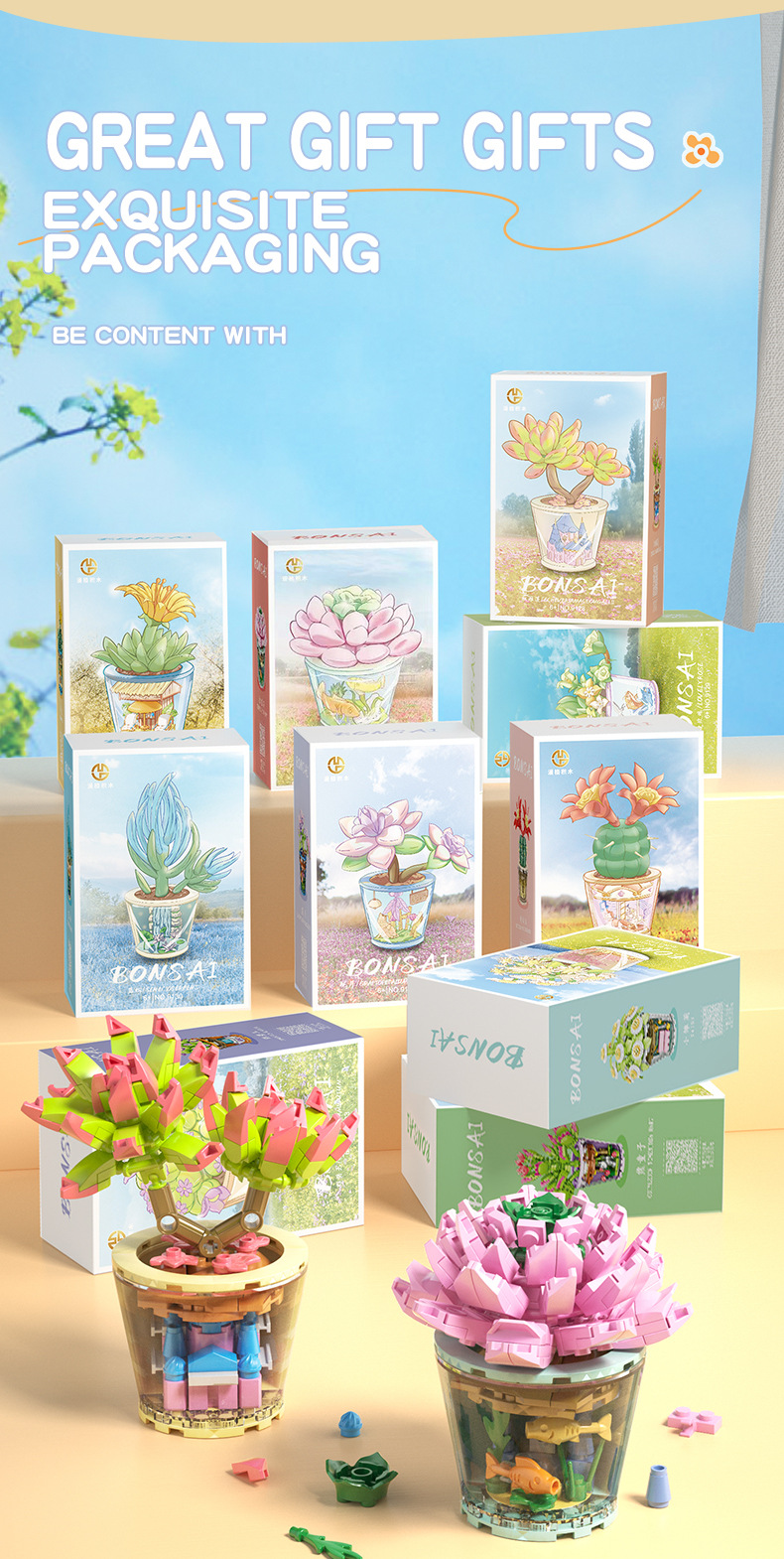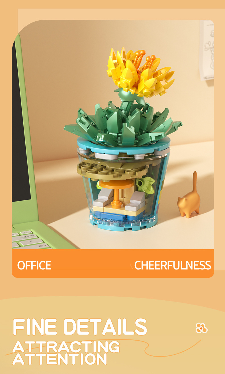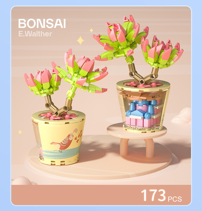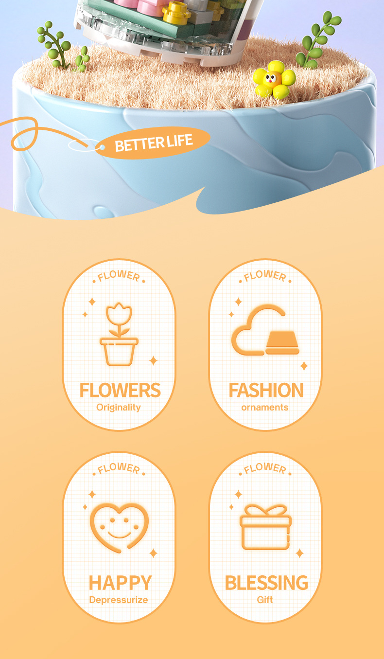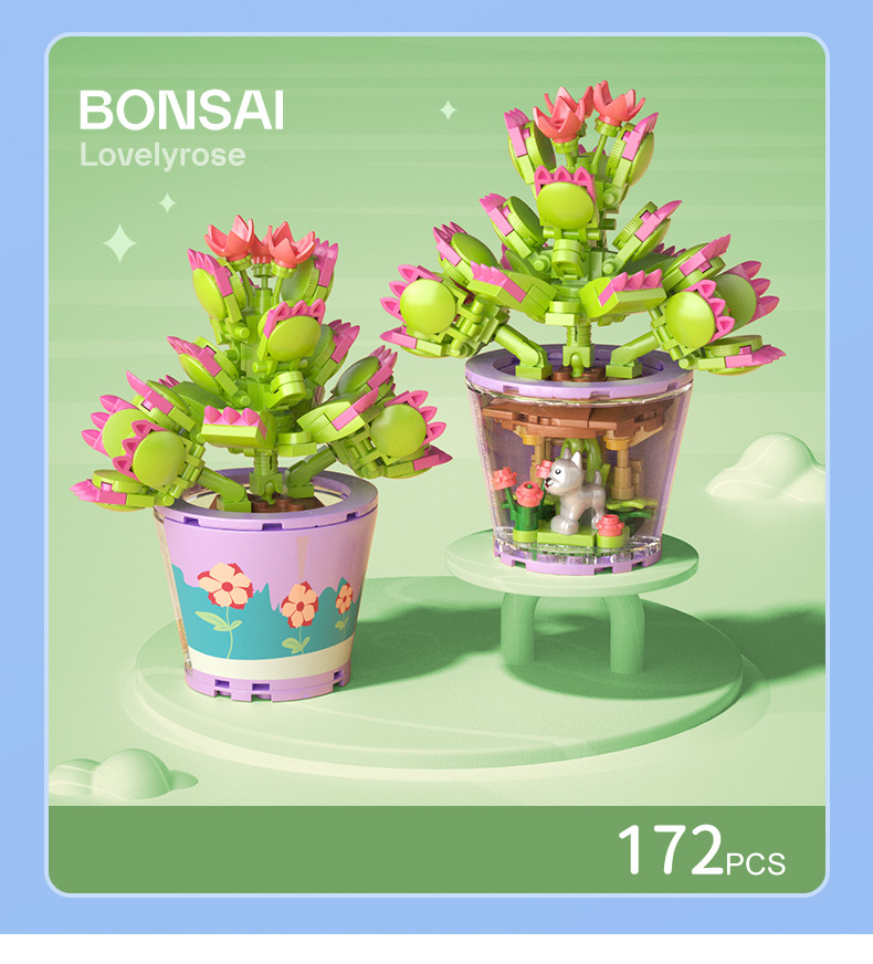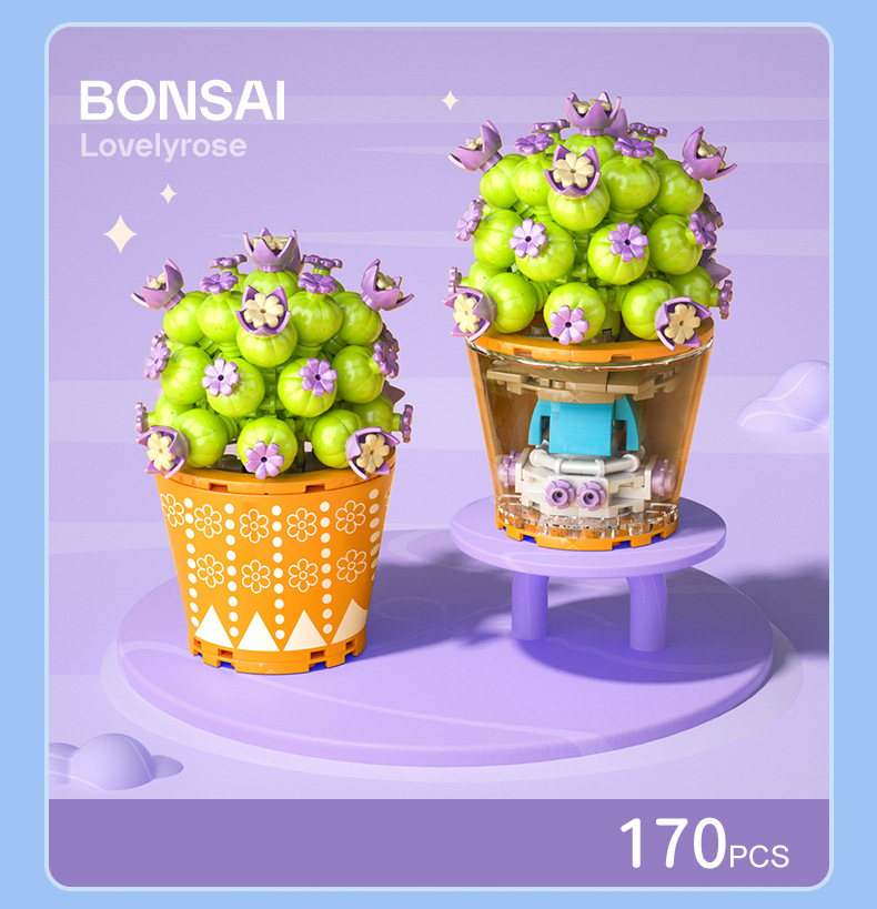 작은 입자 빌딩 블록 시뮬레이션 꽃다발 화분에 심은 소녀 유행 놀이 생일 선물 여아 장난감 교육 가정 장식품스토어 가기