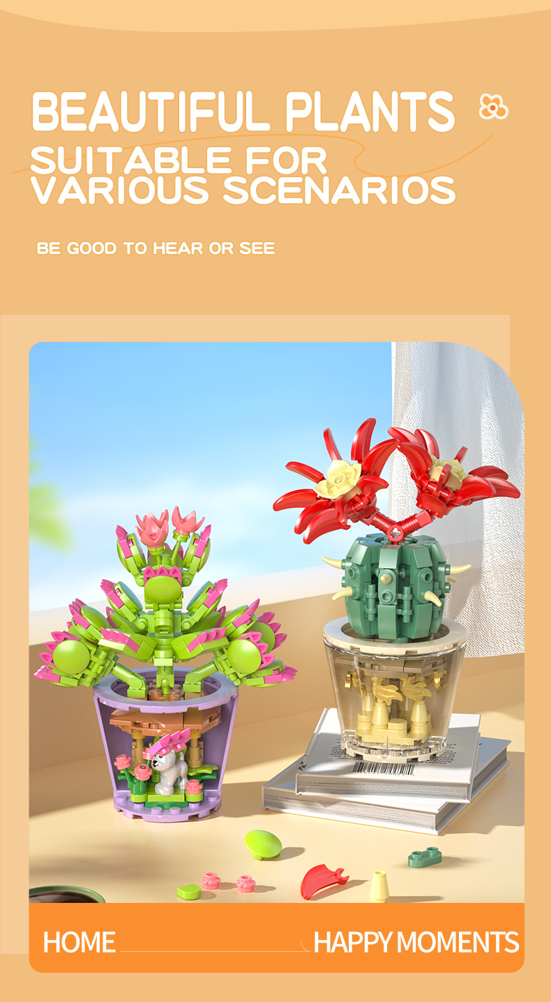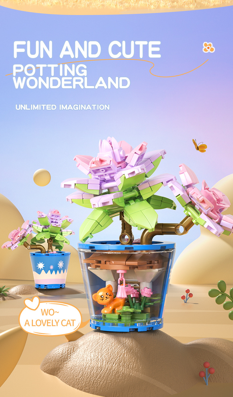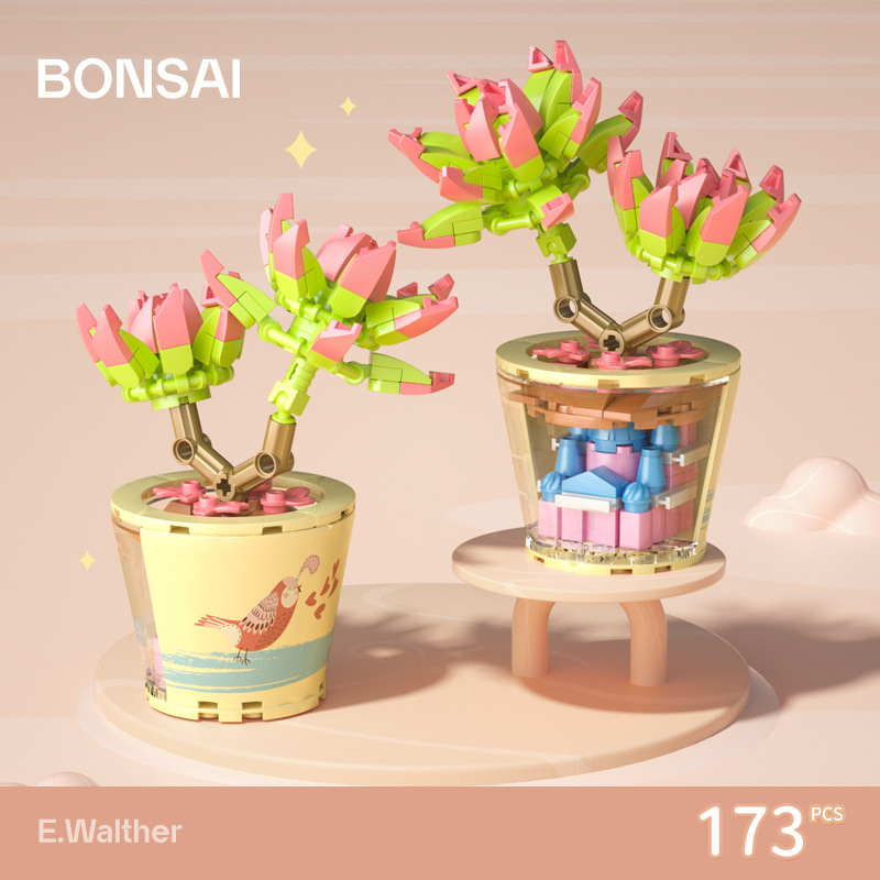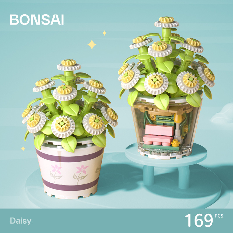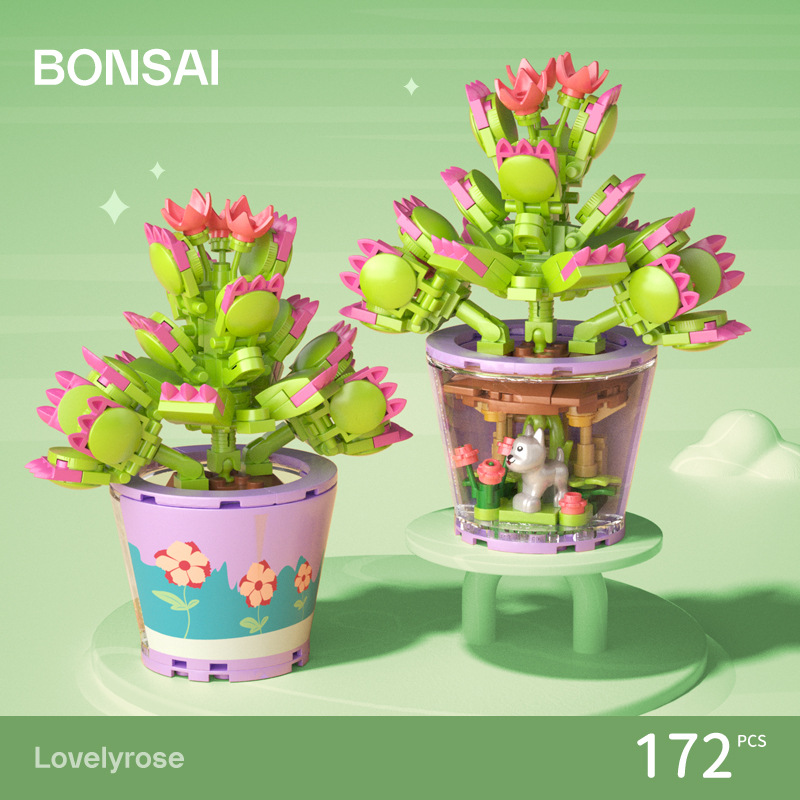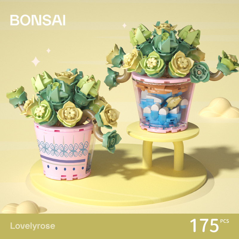 작은 입자 빌딩 블록 시뮬레이션 꽃다발 화분에 심은 소녀 유행 놀이 생일 선물 여아 장난감 교육 가정 장식품