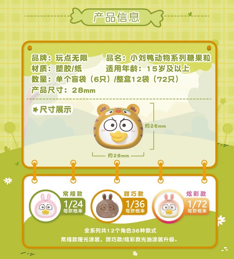 정품 작은 Liu Duck Q Chong 캔디 곡물 블라인드 박스 시리즈 동물 다채로운 에디션 달콤한 초콜릿 세트 조수 놀이 블라인드 박스 플레이 포인트스토어 가기