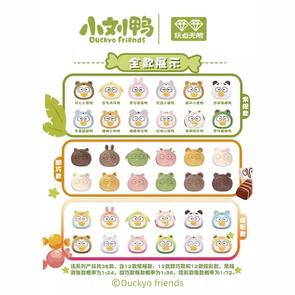 정품 작은 Liu Duck Q Chong 캔디 곡물 블라인드 박스 시리즈 동물 다채로운 에디션 달콤한 초콜릿 세트 조수 놀이 블라인드 박스 플레이 포인트