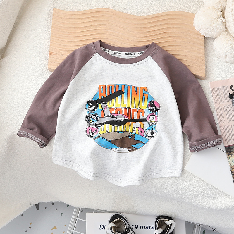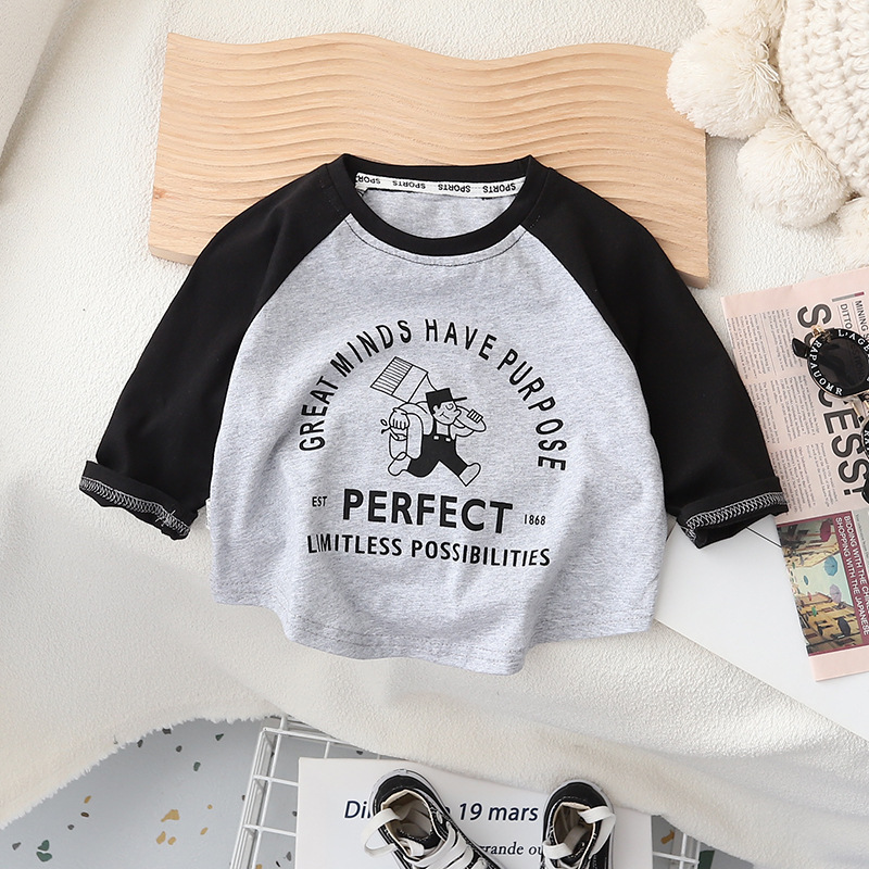 자이언트 소프트 왁스 ~ 남아 면 얇은 라글란 긴팔 티셔츠 봄과 가을 새로운 아기 만화 탑 베이스 셔츠 조수스토어 가기