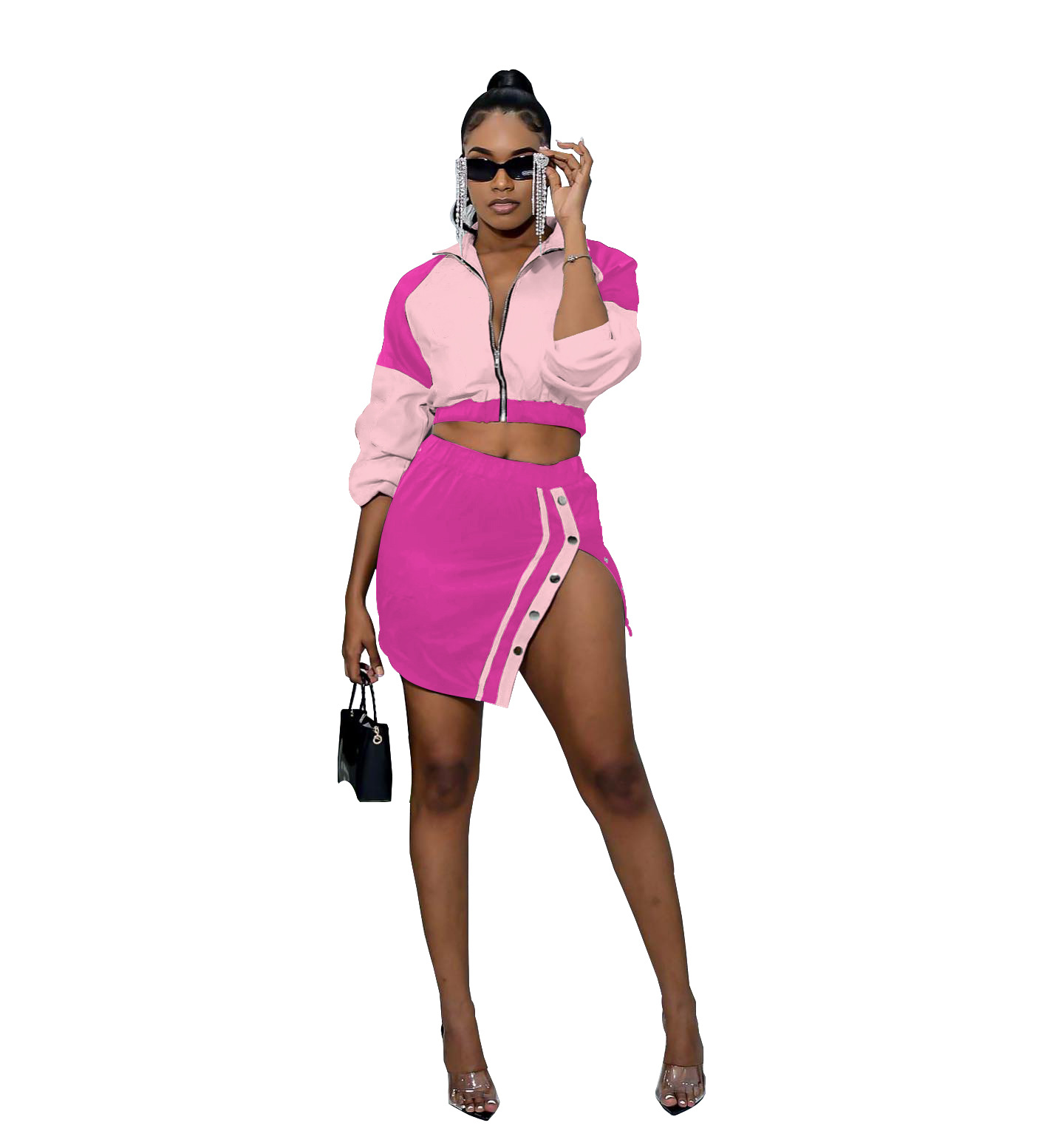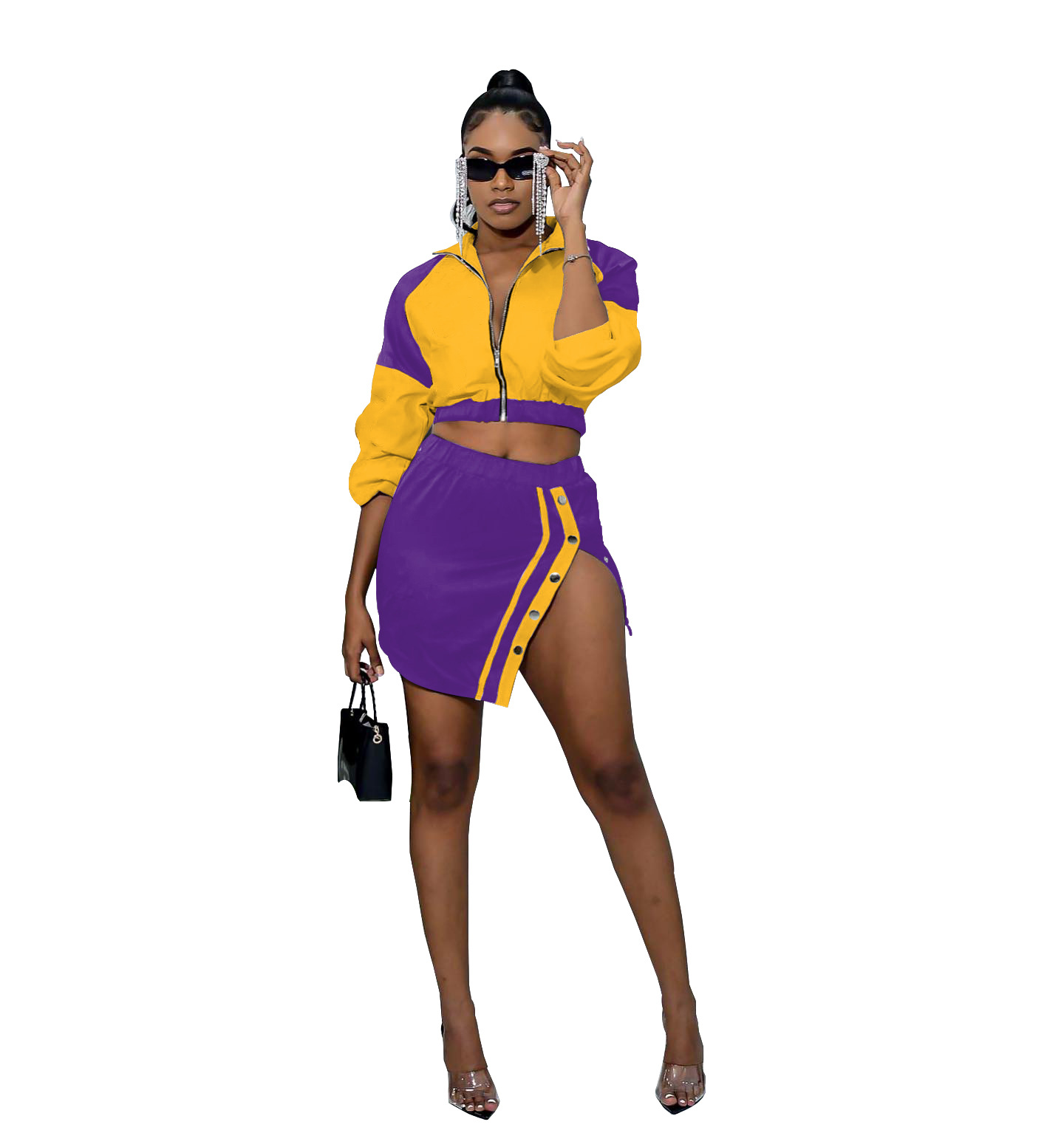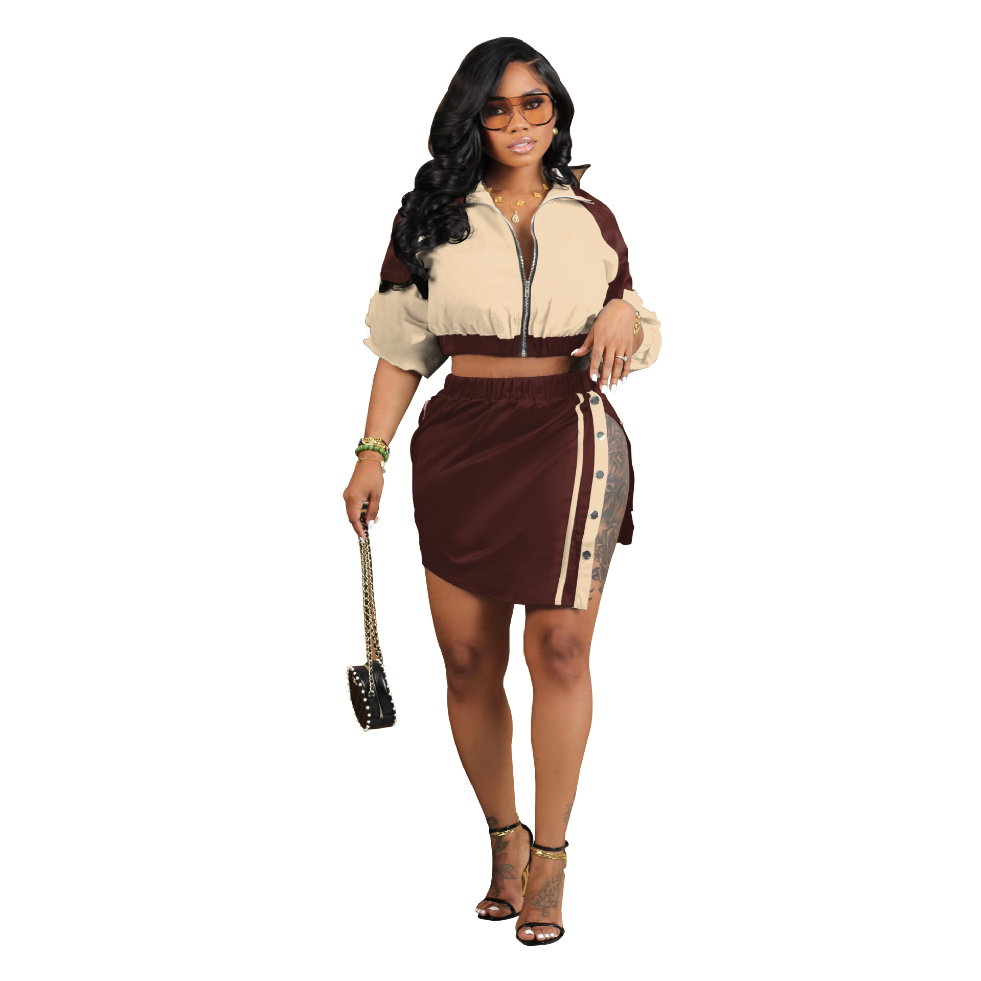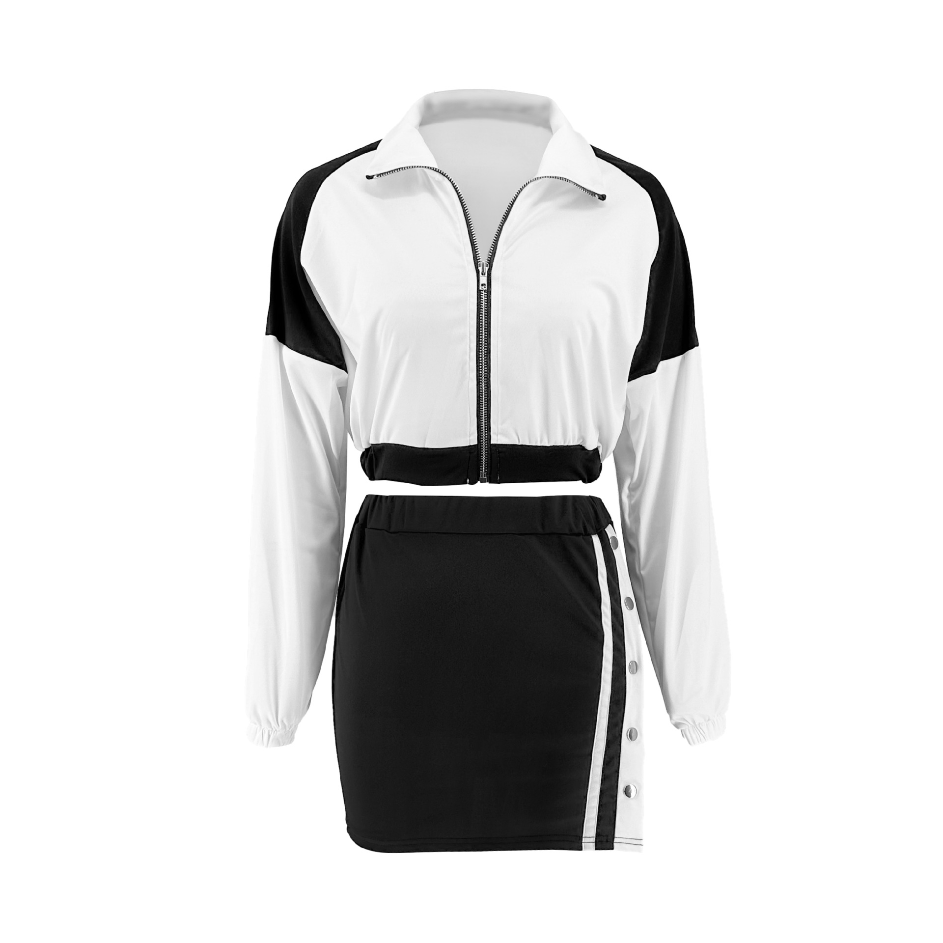 D10057 아마존 국경 간 가을과 겨울 새로운 유럽과 미국의 여성 컬러 매칭 긴 소매 스커트 세트 탄성 투피스 여성 세트