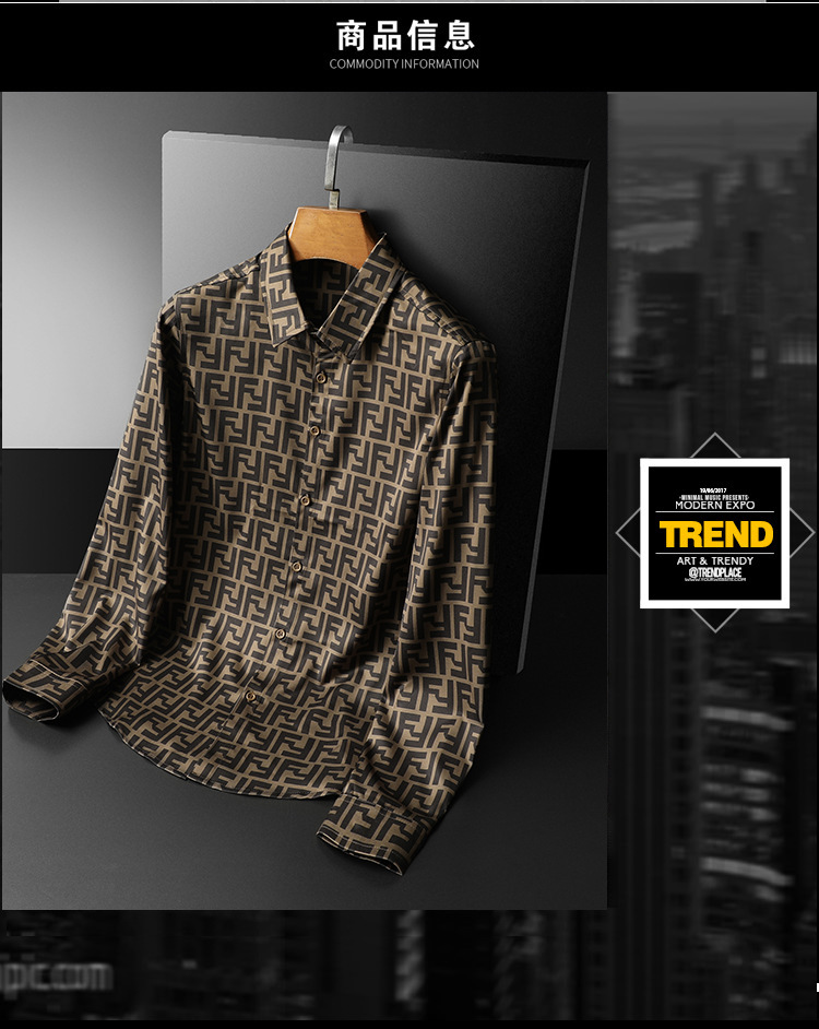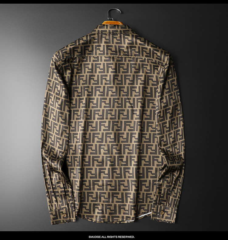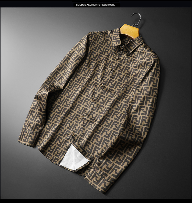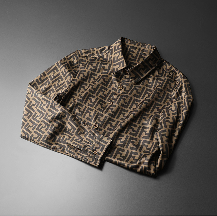 유럽 스타일 2024 봄 가을 긴팔 셔츠 남성용 한국 스타일 슬림핏 캐주얼 셔츠 대형 사이즈 트렌디 브랜드 프린트스토어 가기