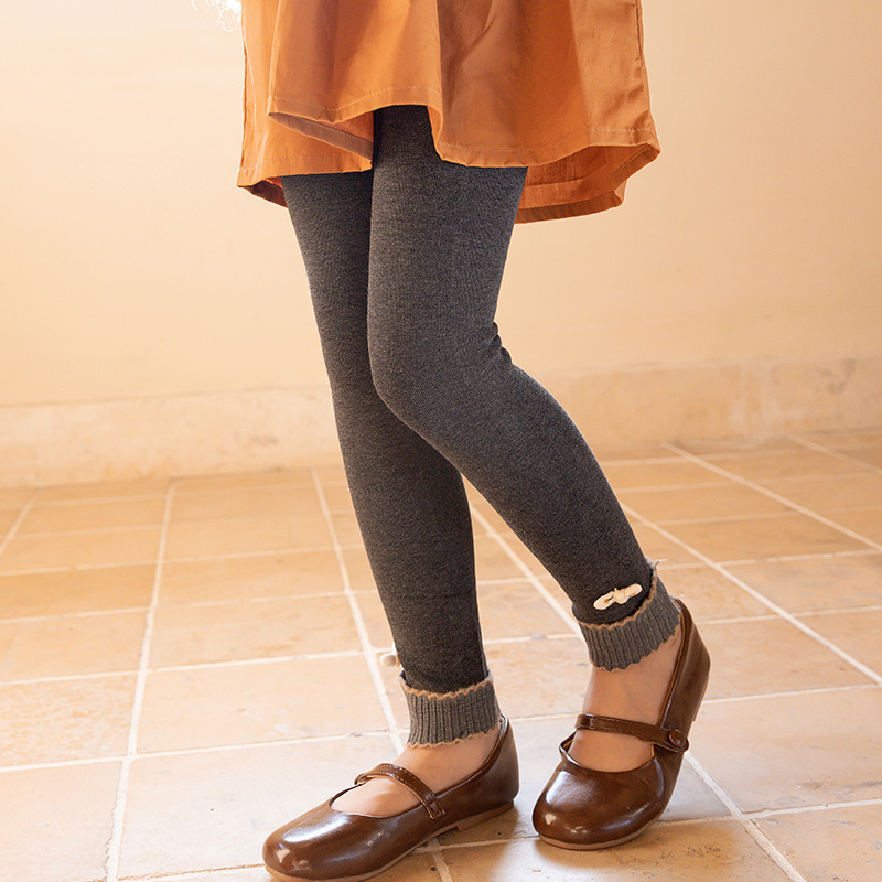 23 새로운 어린이 레깅스 봄과 가을 얇은 벨벳 패딩 소녀 샌딩 귀여운 활 따뜻한 바지 웨스턴 스타일