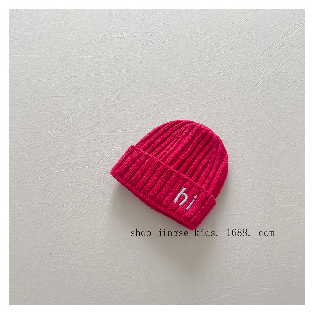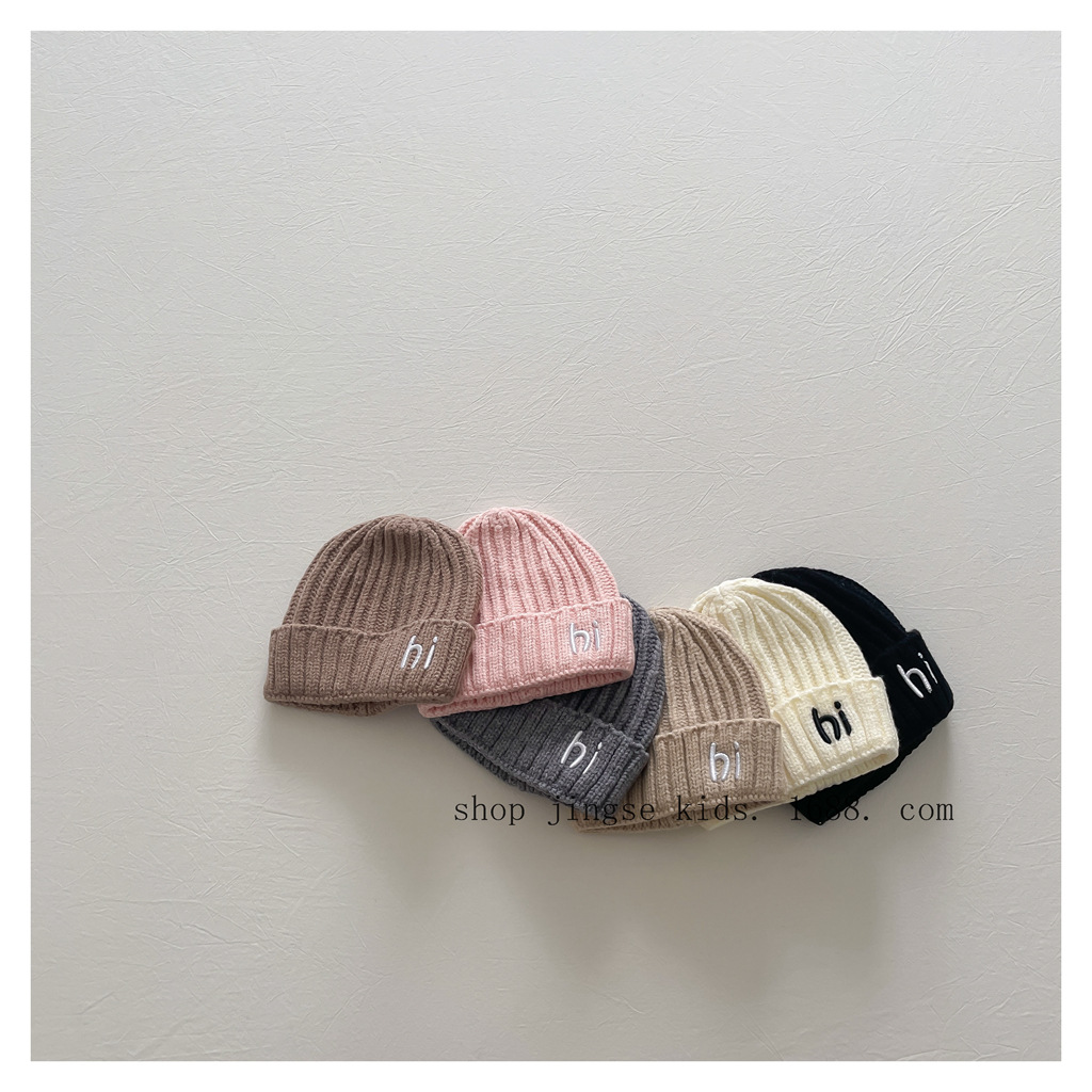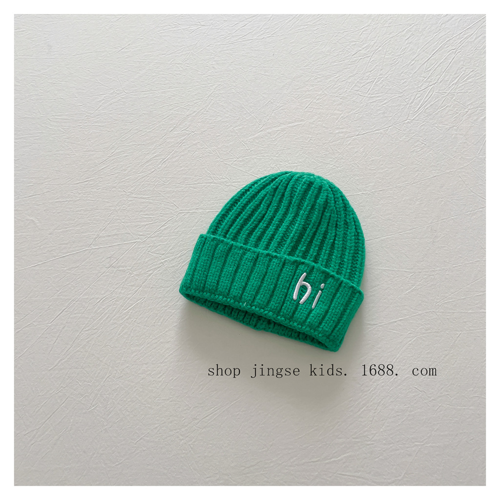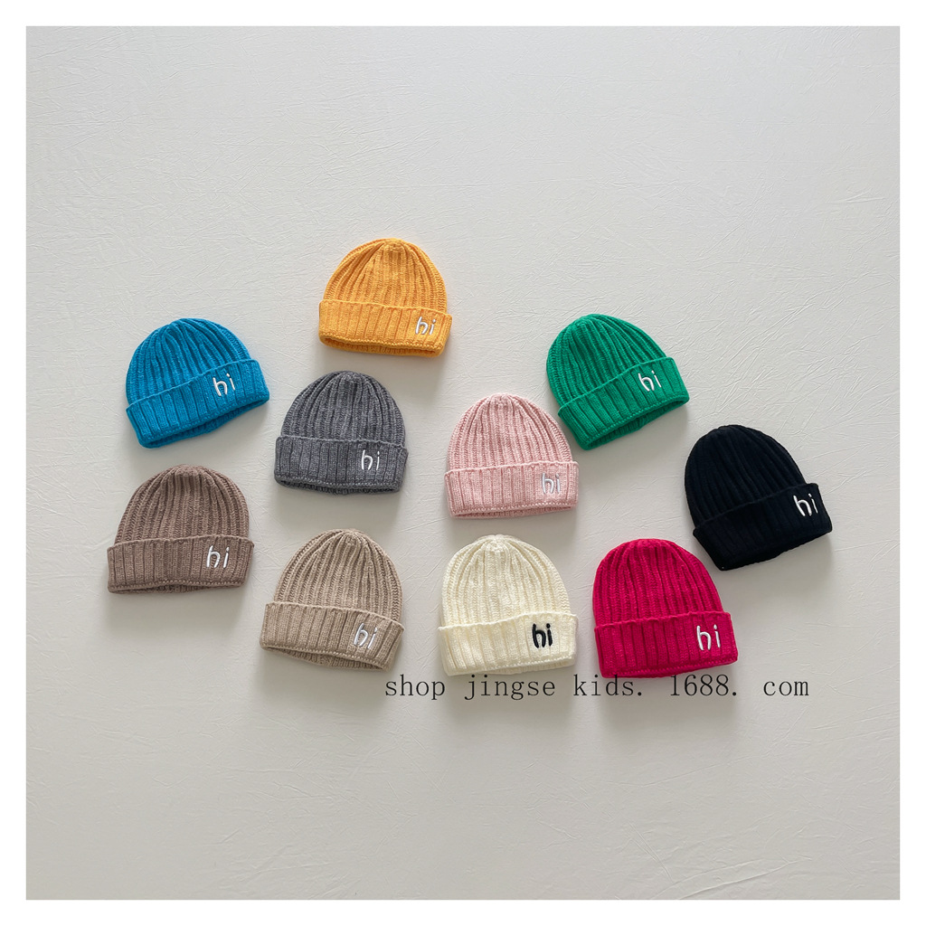 심플 인 한국 스타일 아기의 양모 모자 가을과 겨울 따뜻한 단색 자수 편지 캔디 컬러 니트 모자