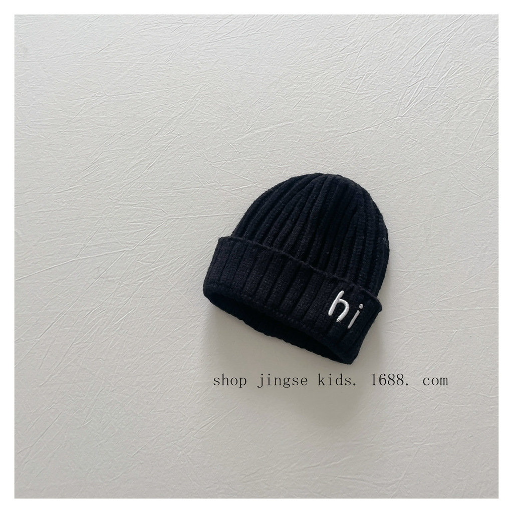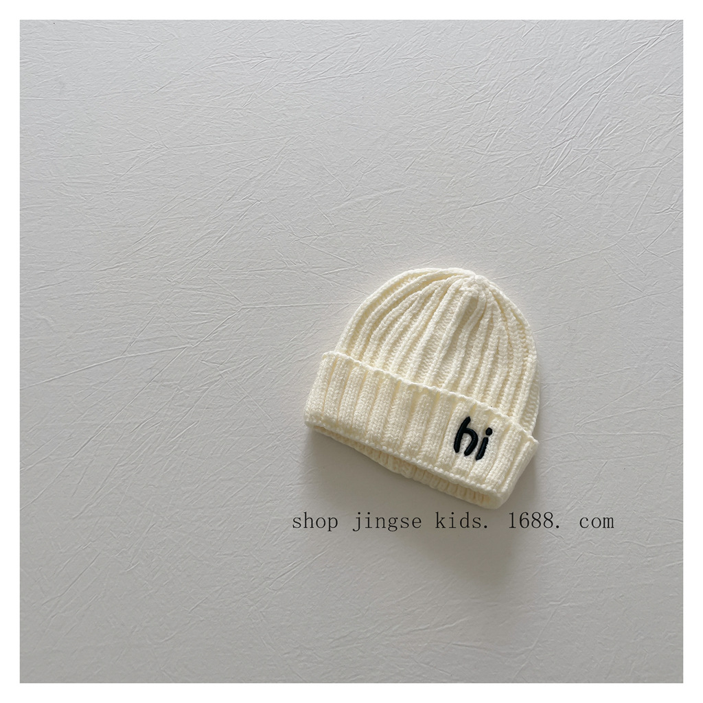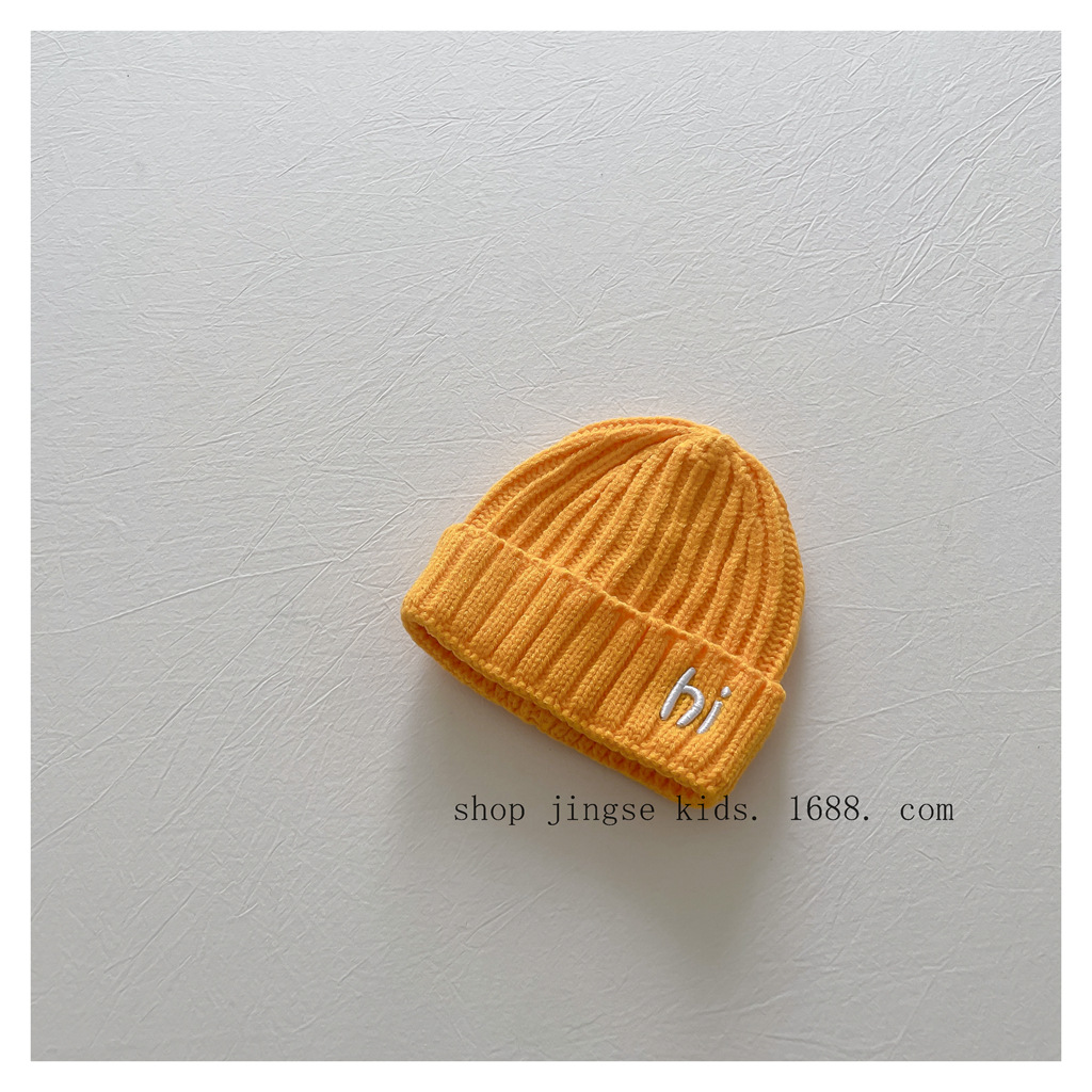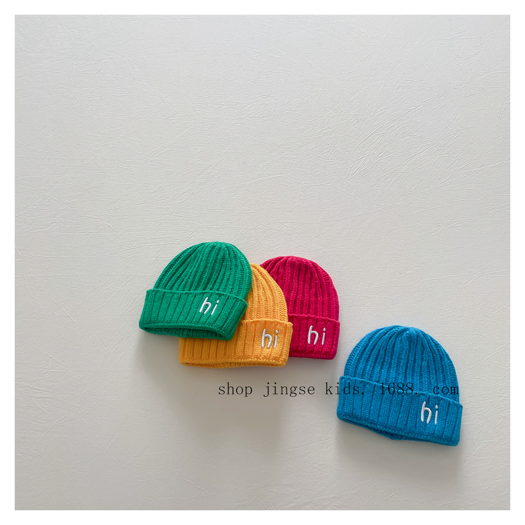 심플 인 한국 스타일 아기의 양모 모자 가을과 겨울 따뜻한 단색 자수 편지 캔디 컬러 니트 모자스토어 가기
