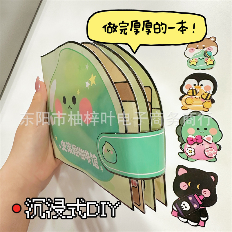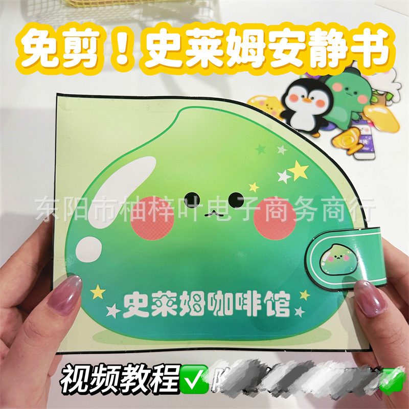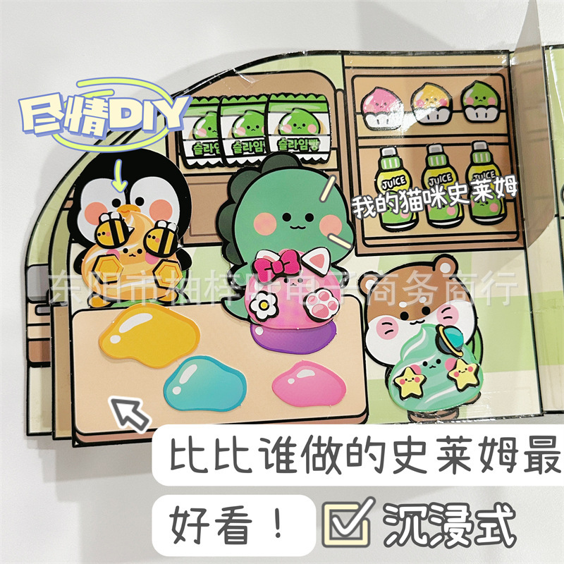 • 컷 프리 대형 조용한 책-[슬라임 카페] (소재 가방 부착)