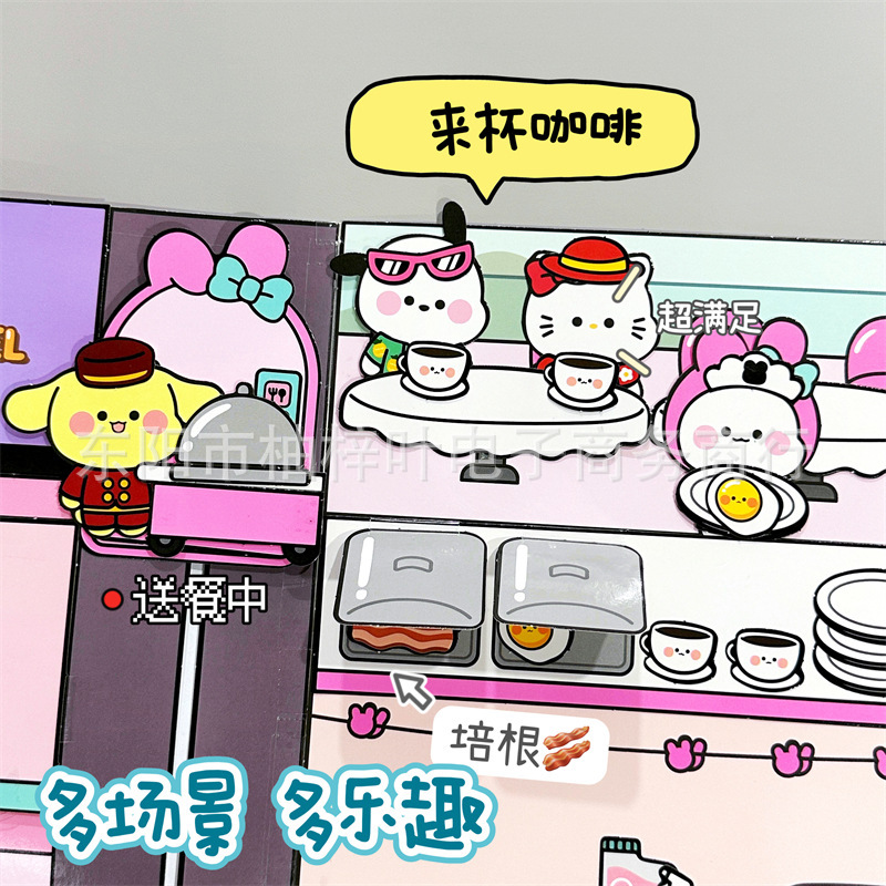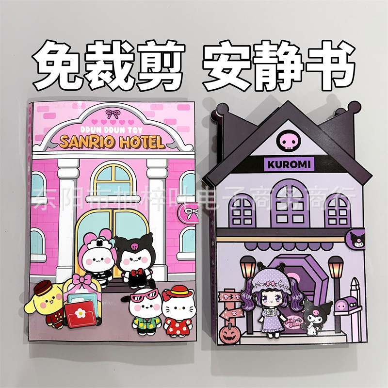 컷 프리 산리오 호텔 캐슬 조용한 책 DIY 재료 어린이 손으로 반죽 한 음악 창조적 인 감압 장난감스토어 가기