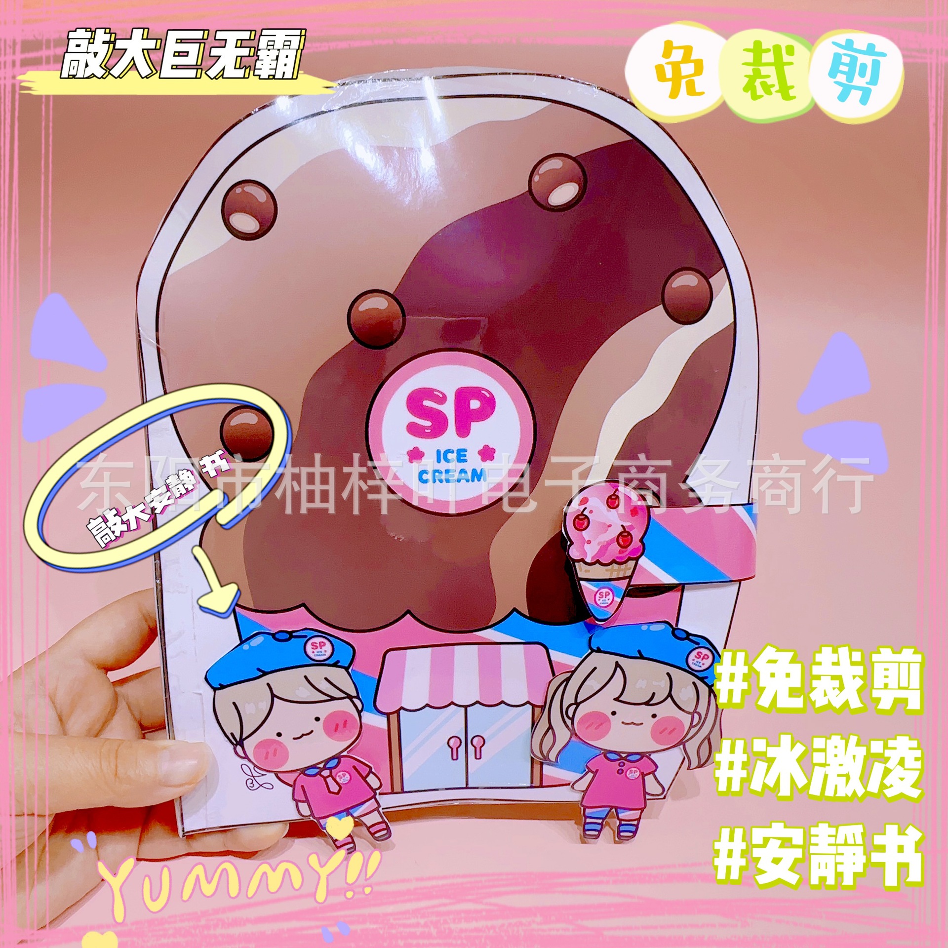 • 컷 프리 대형 조용한 책-[맛있는 아이스크림 가게] (소재 팩 포함)