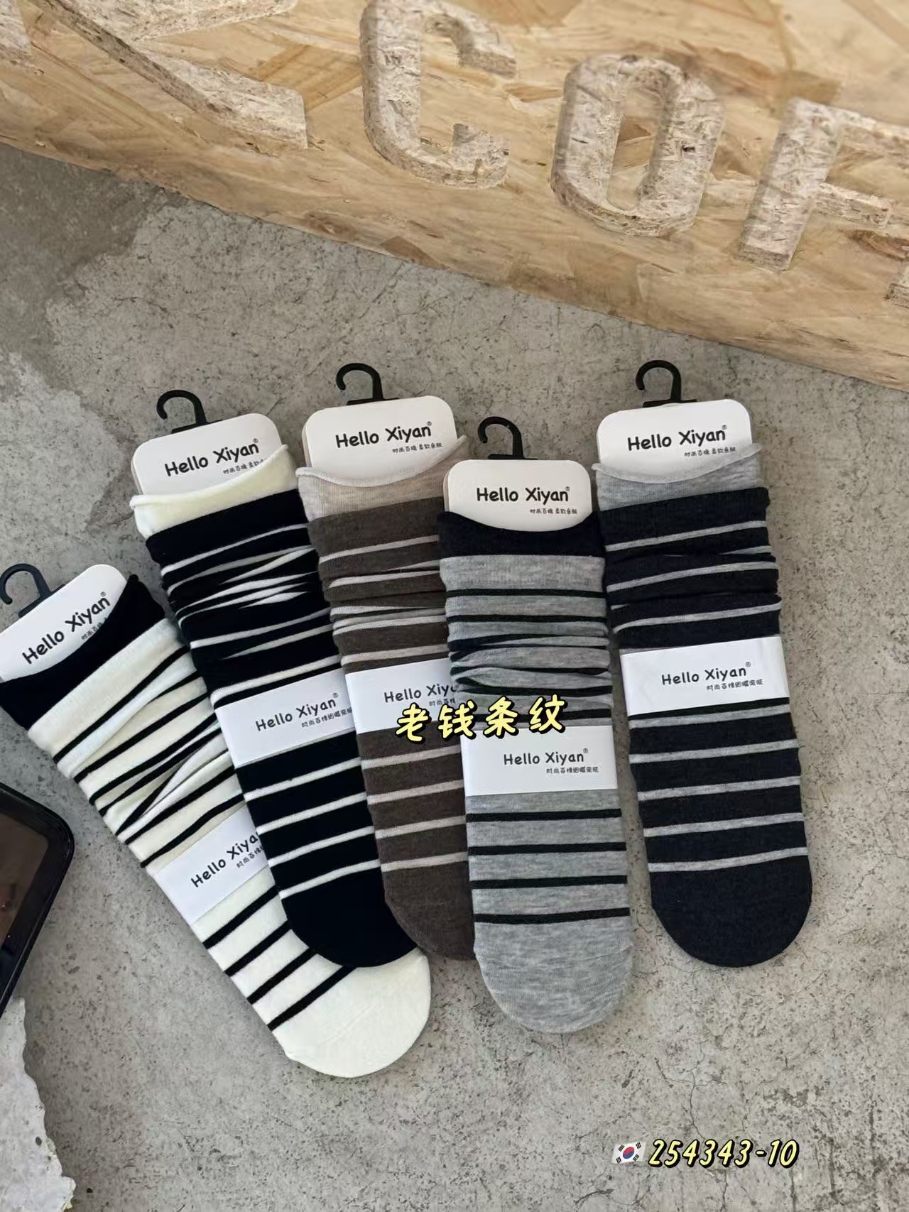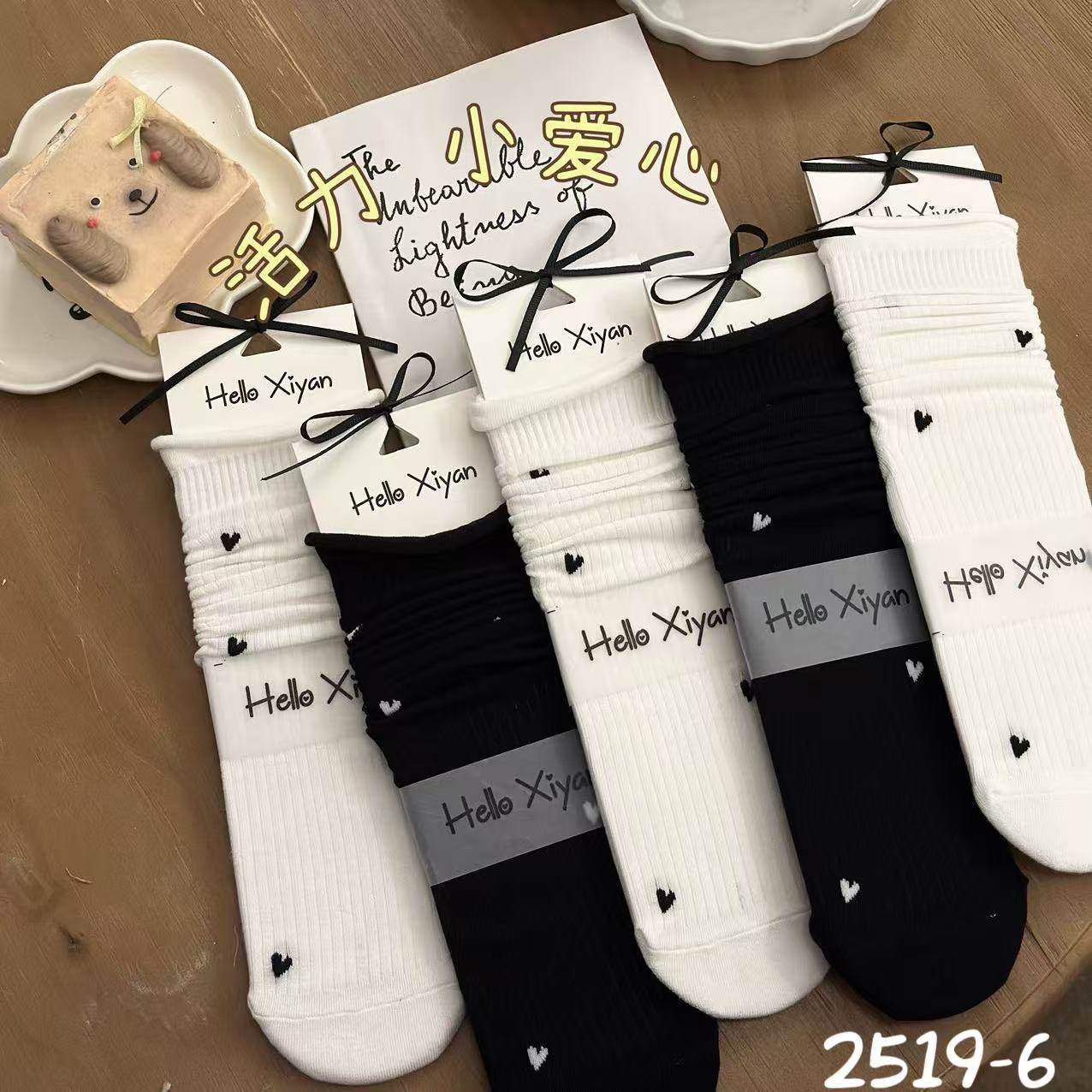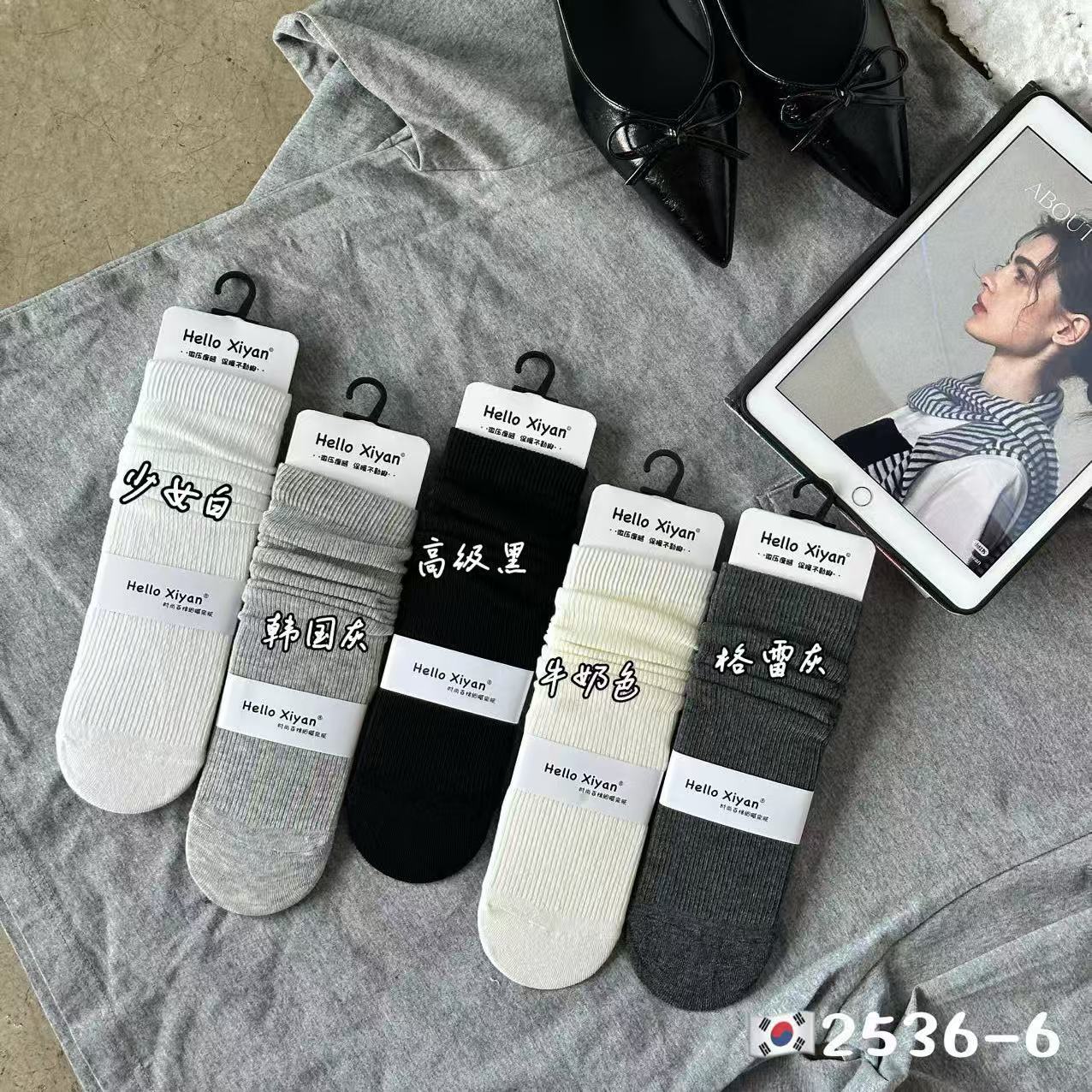 Xiyanshu 여성용 가을 겨울 신상품 일본 및 한국 스타일 흑백 줄무늬 스택 양말, 종아리 양말, 인터넷 연예인 스타일, 재고 있음, 직배송스토어 가기