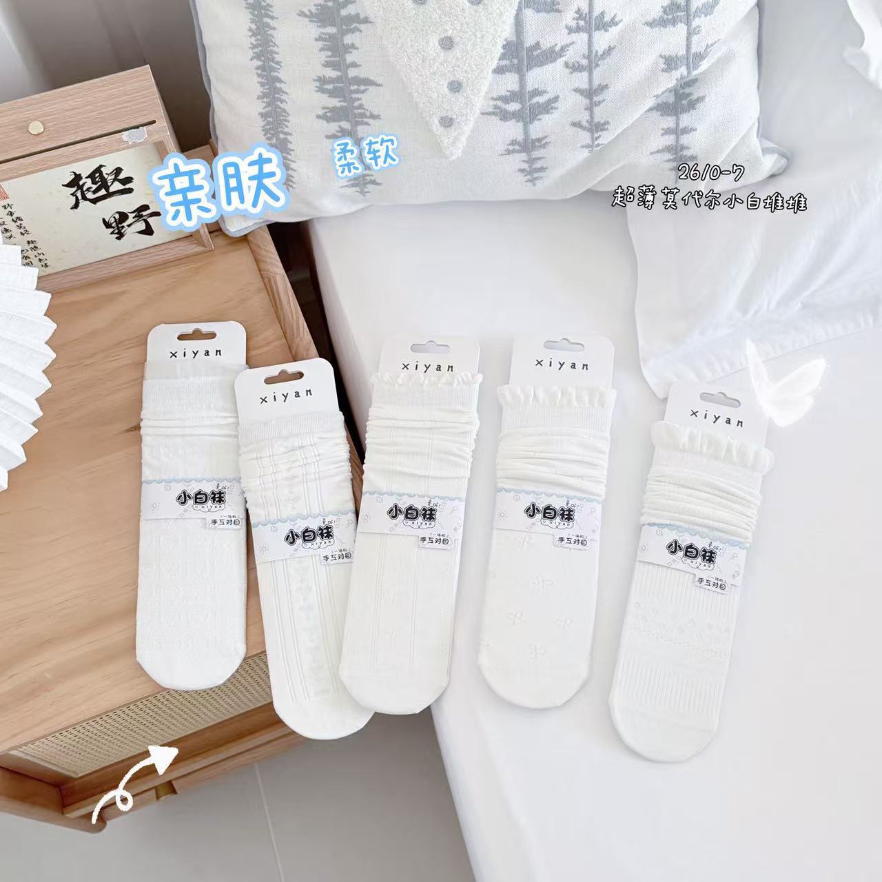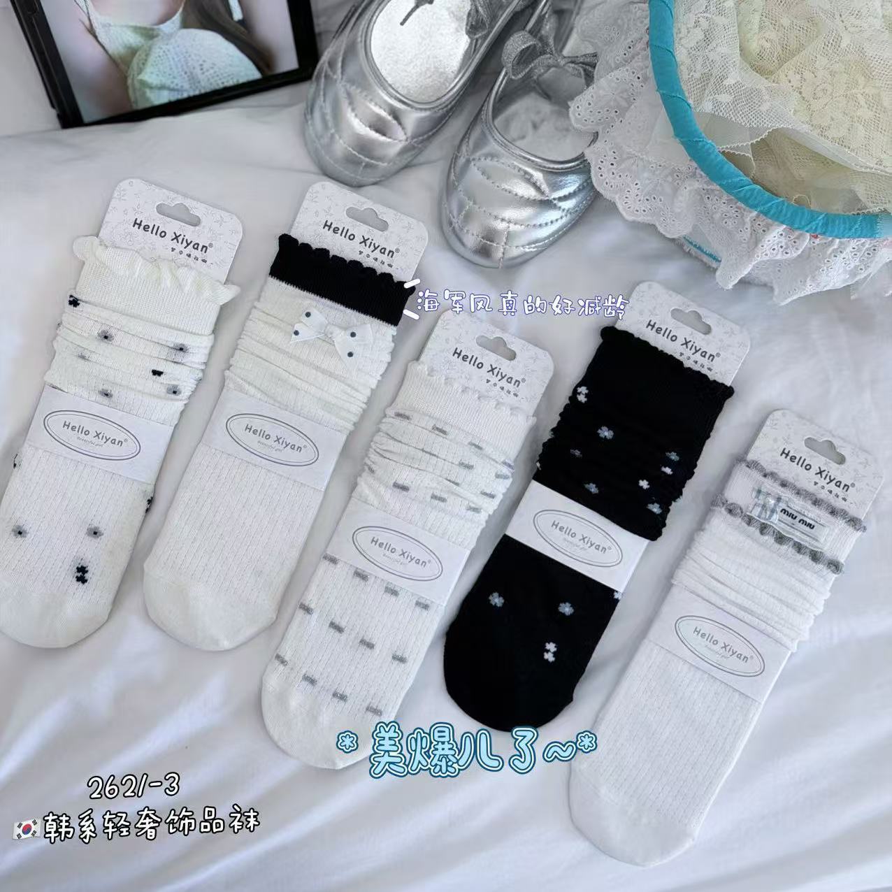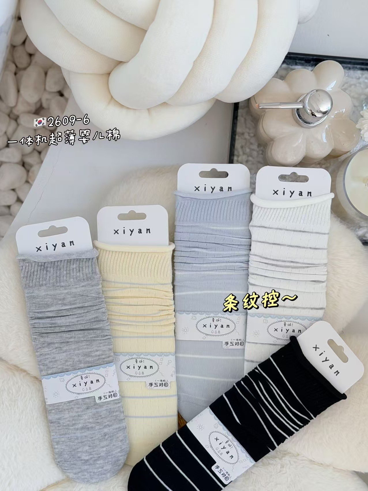시옌 양말 여성용 봄 여름 신상품 일본 및 한국 스타일 흑백 스트라이프 스타킹/종아리 양말 인터넷 인기 상품 재고 있음 바로 배송스토어 가기