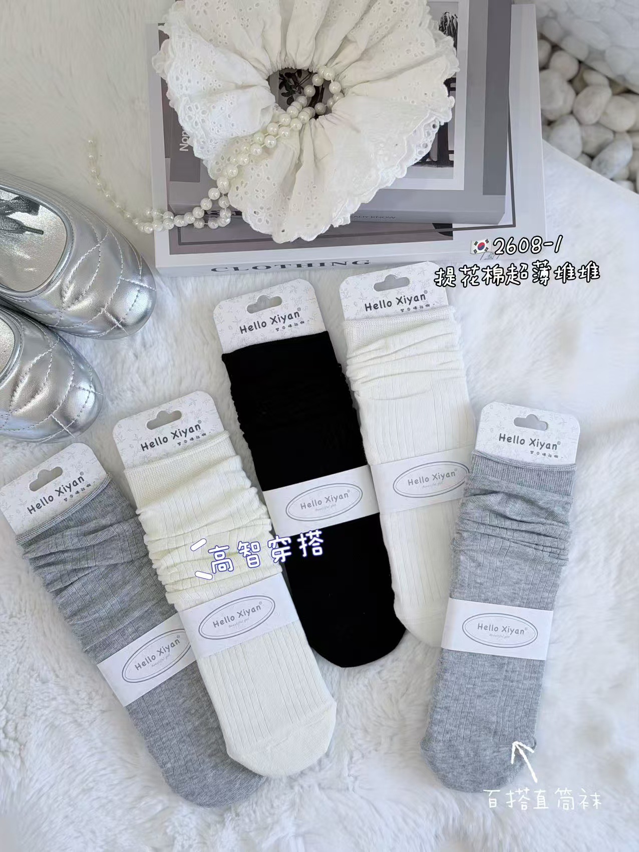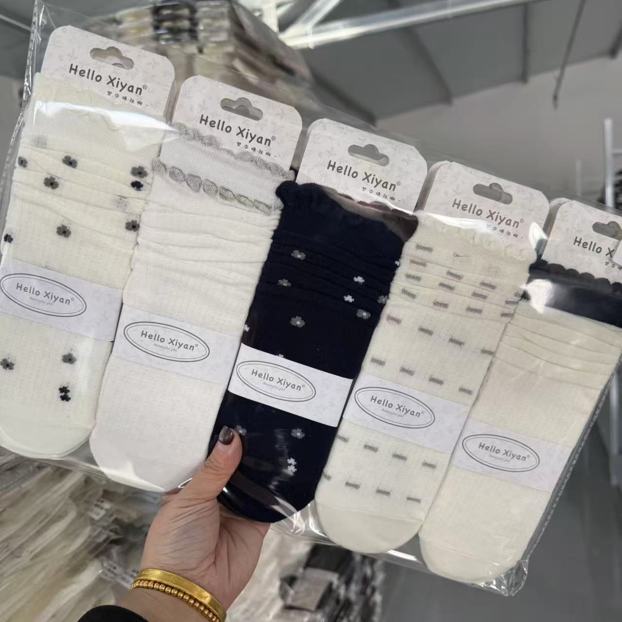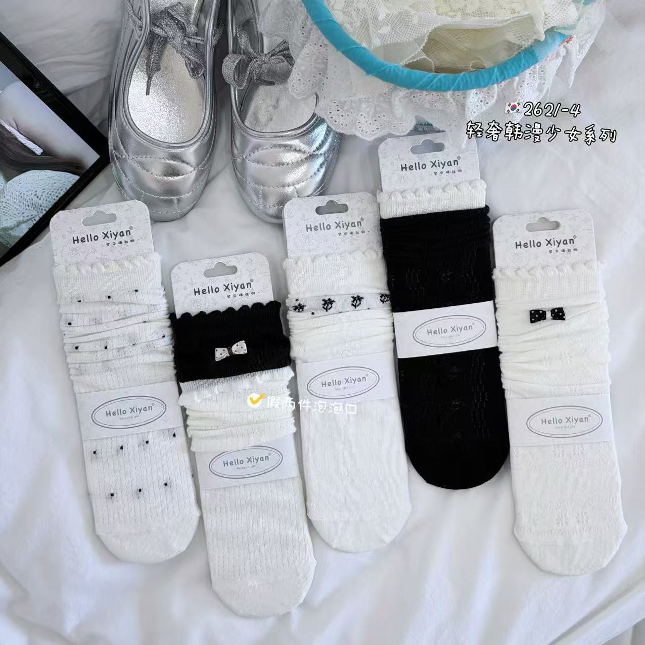 시옌 양말 여성용 봄 여름 신상품 일본 및 한국 스타일 흑백 스트라이프 스타킹/종아리 양말 인터넷 인기 상품 재고 있음 바로 배송스토어 가기