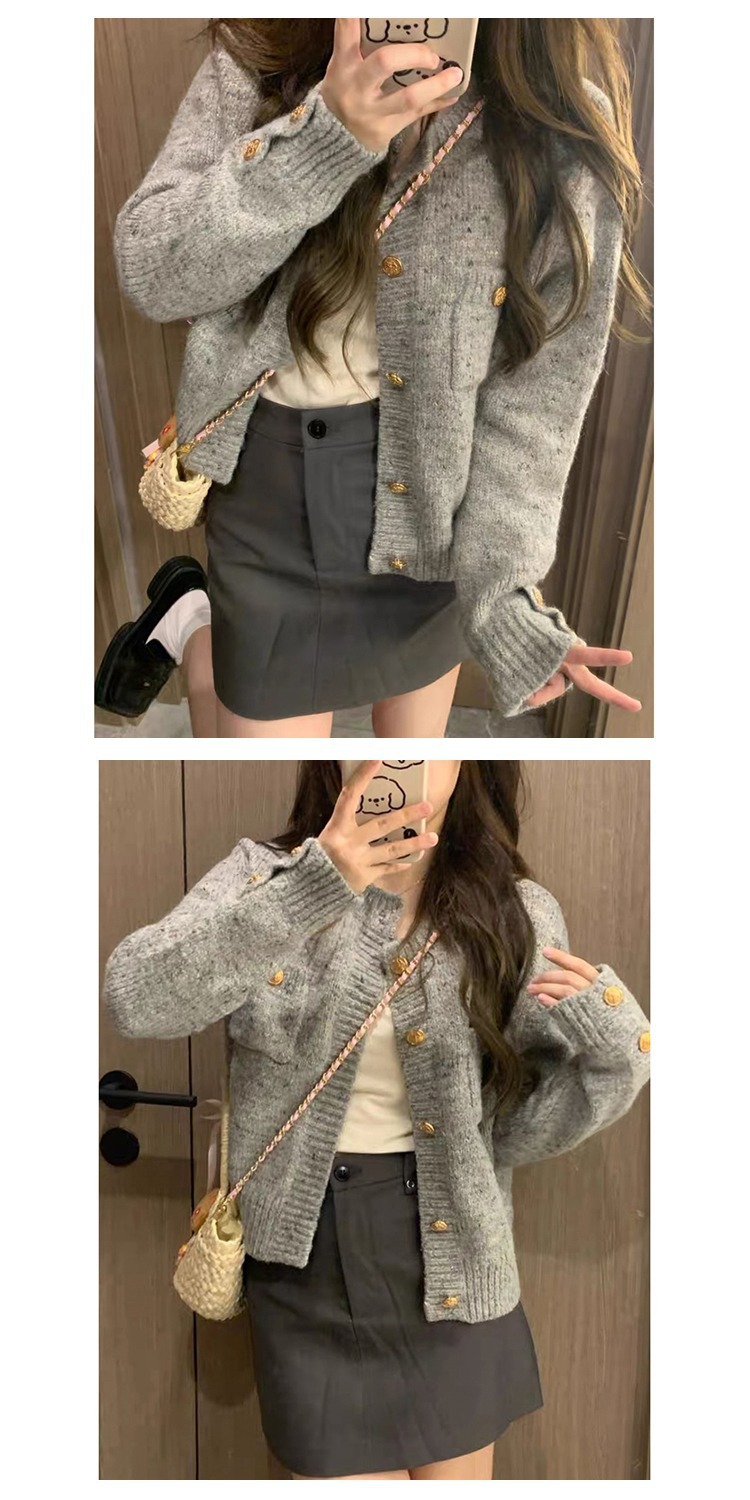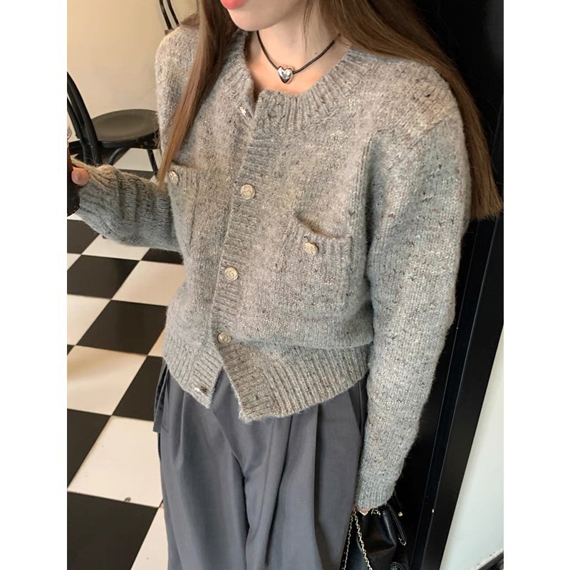 빈티지 샤넬 스타일 플라워 라인 잡색의 니트 카디건 여성의 느슨한 가을 새로운 고급 감각 작은 스웨터 코트스토어 가기