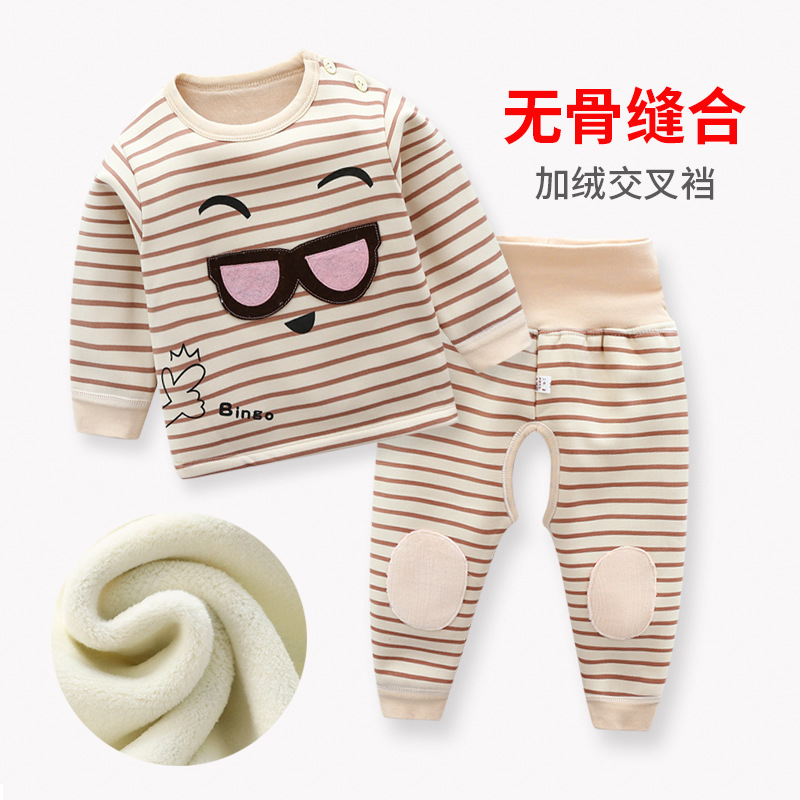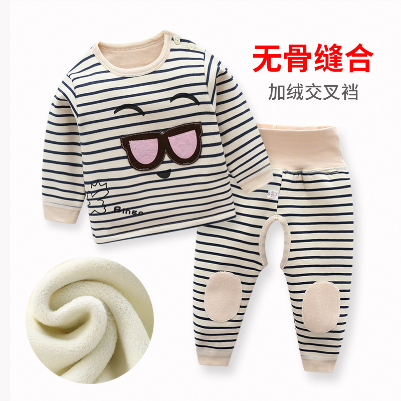 봄, 가을, 겨울 아기 소년과 소녀의 열 속옷 세트 아기 높은 허리 배꼽 보호 바지 기모 두꺼운 어깨 버클 바닥 셔츠