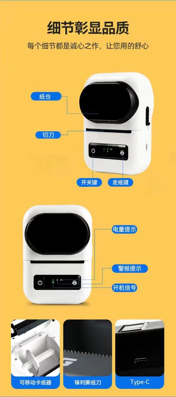 휴대용 열 블루투스 라벨 프린터 익스프레스 전자 표면 단일 접착 열 프린터 58mm 폭발스토어 가기