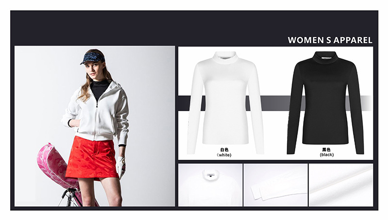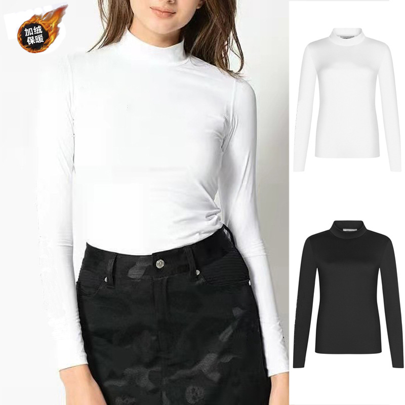 봄 가을 여성 골프웨어 패셔너블 슬림핏 긴팔 티셔츠 신축성 내마모성 다용도 스탠드 칼라 테니스웨어 이너웨어