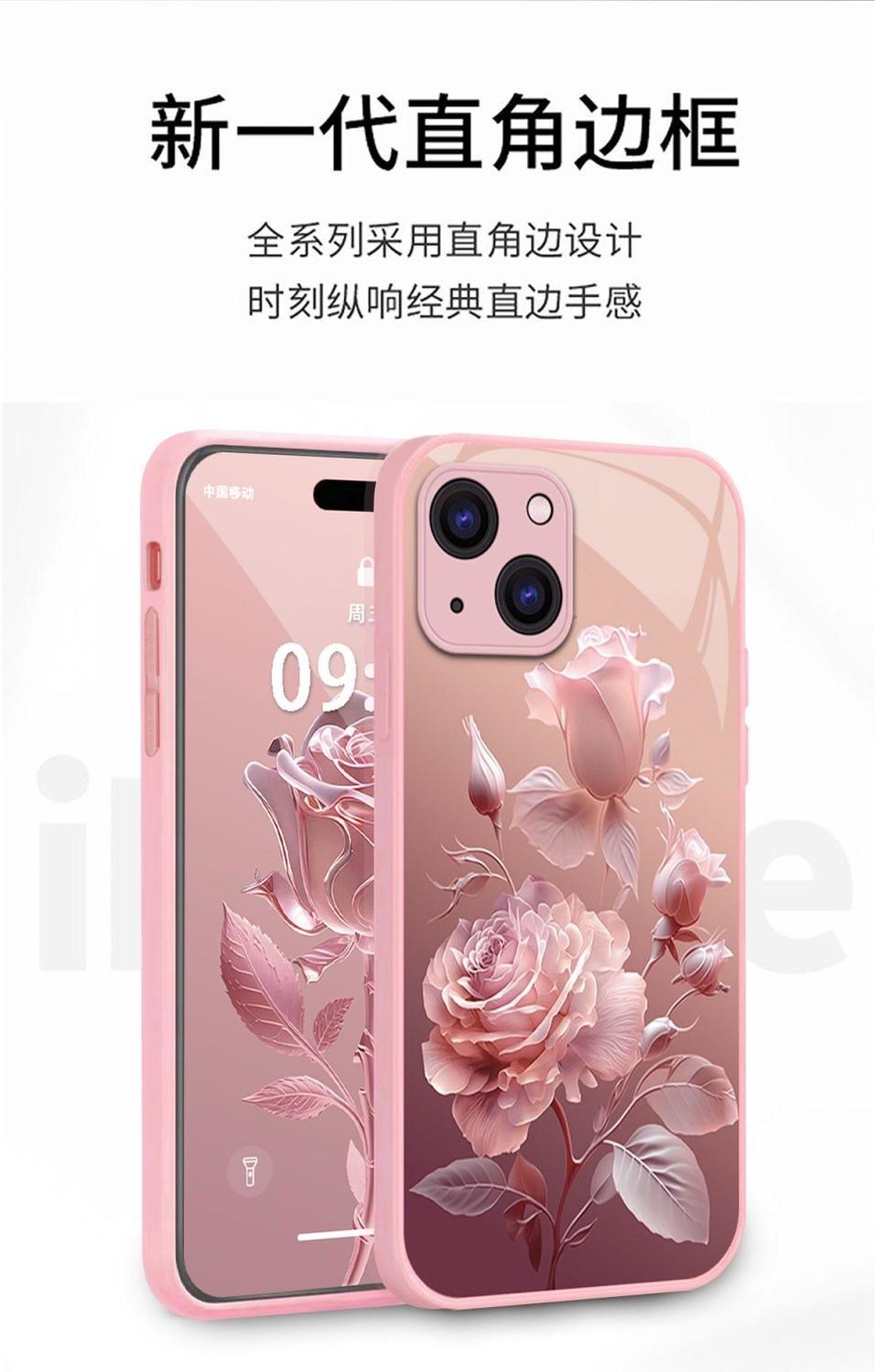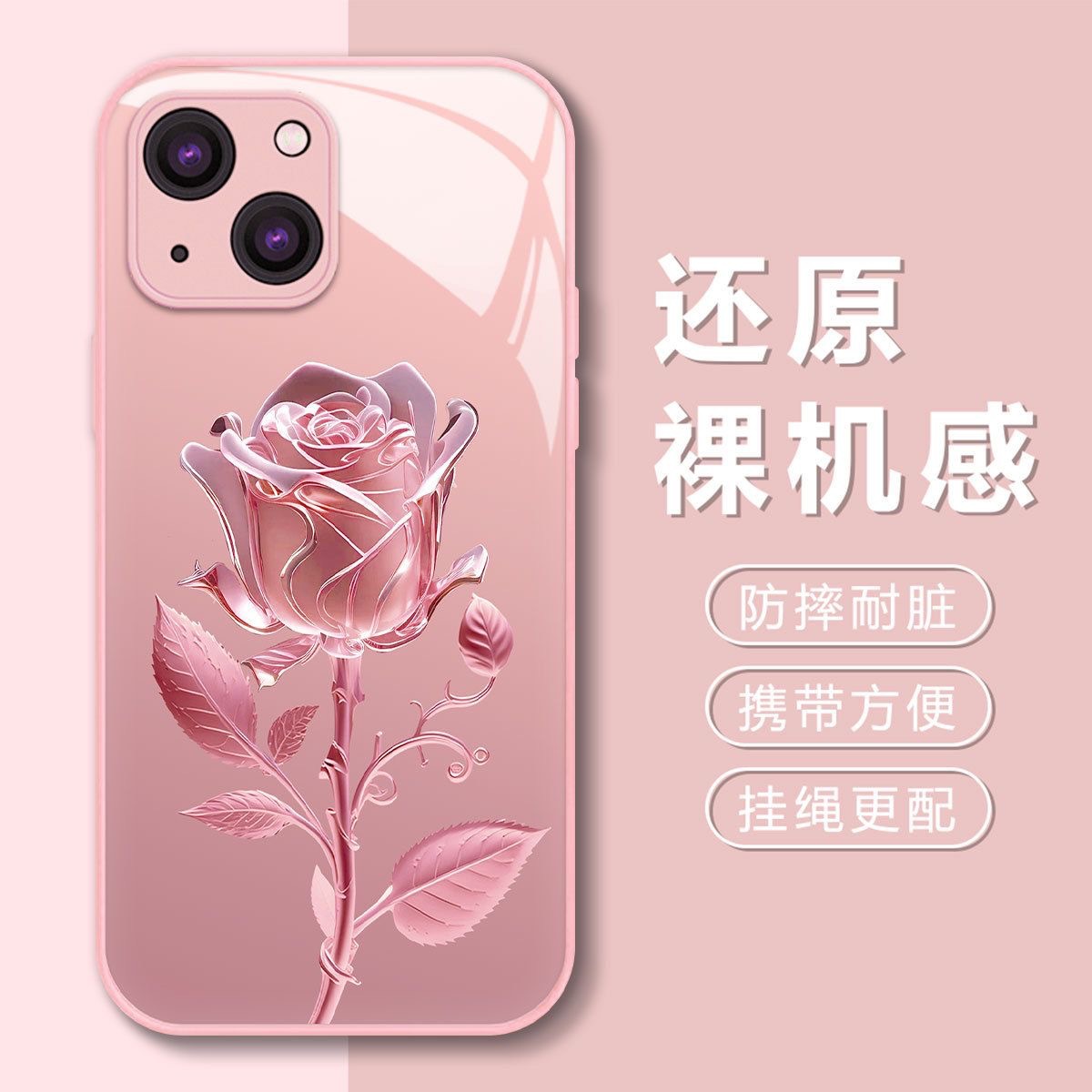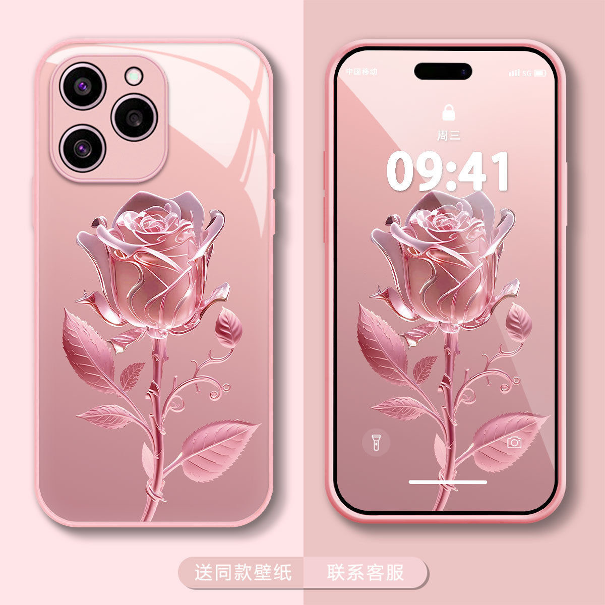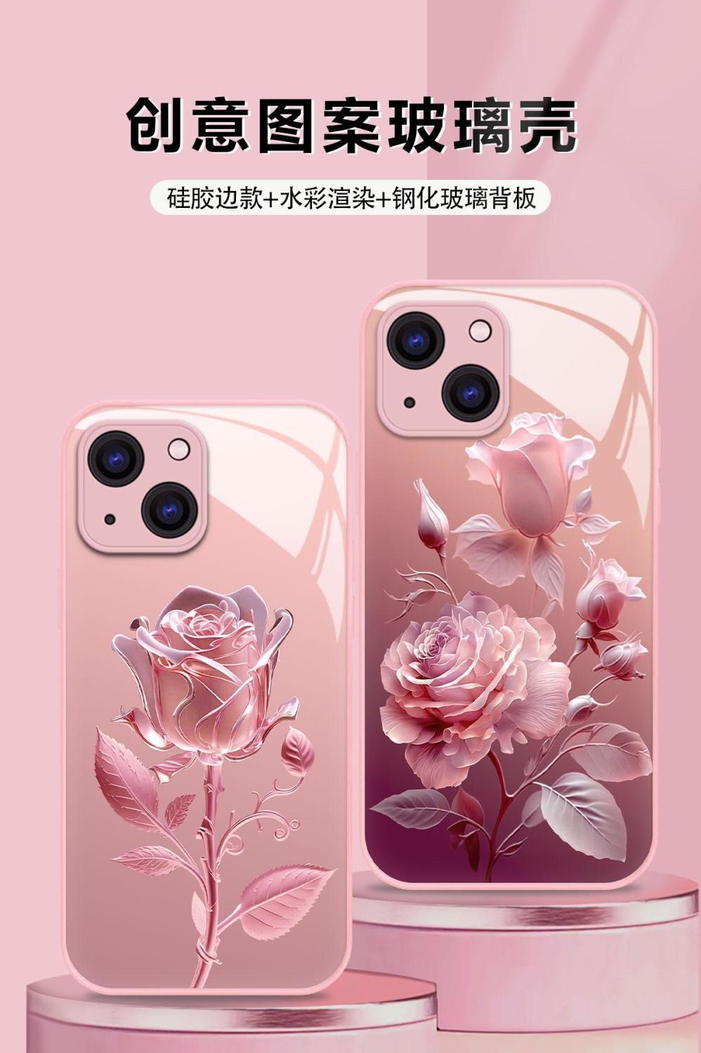 핑크 로즈 휴대 전화 케이스 아이폰 15 울트라 새로운 아이폰 15Pro 유리 인스토어 가기