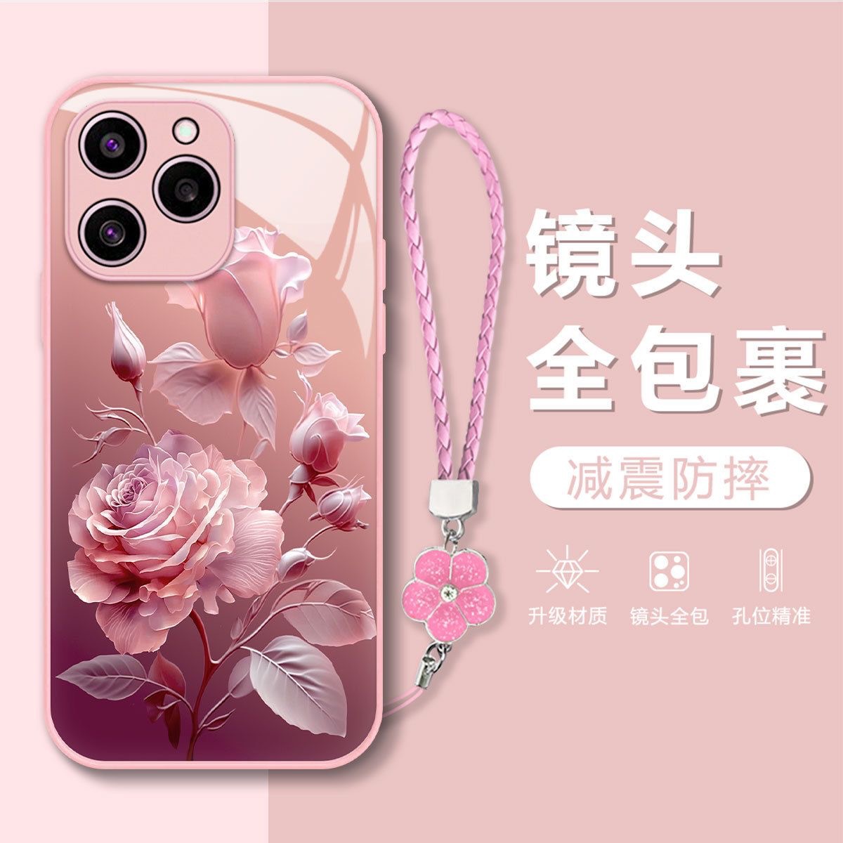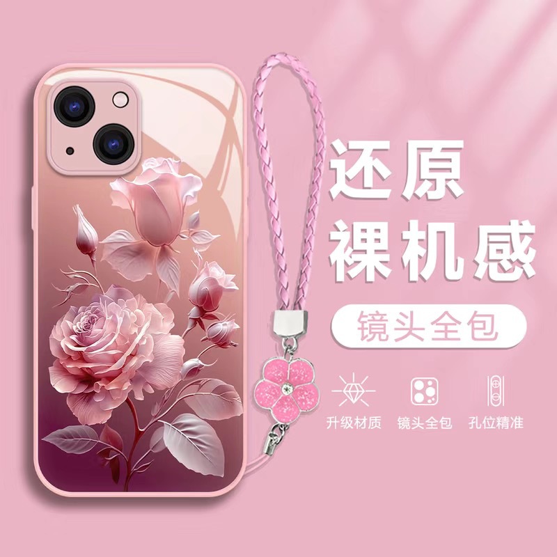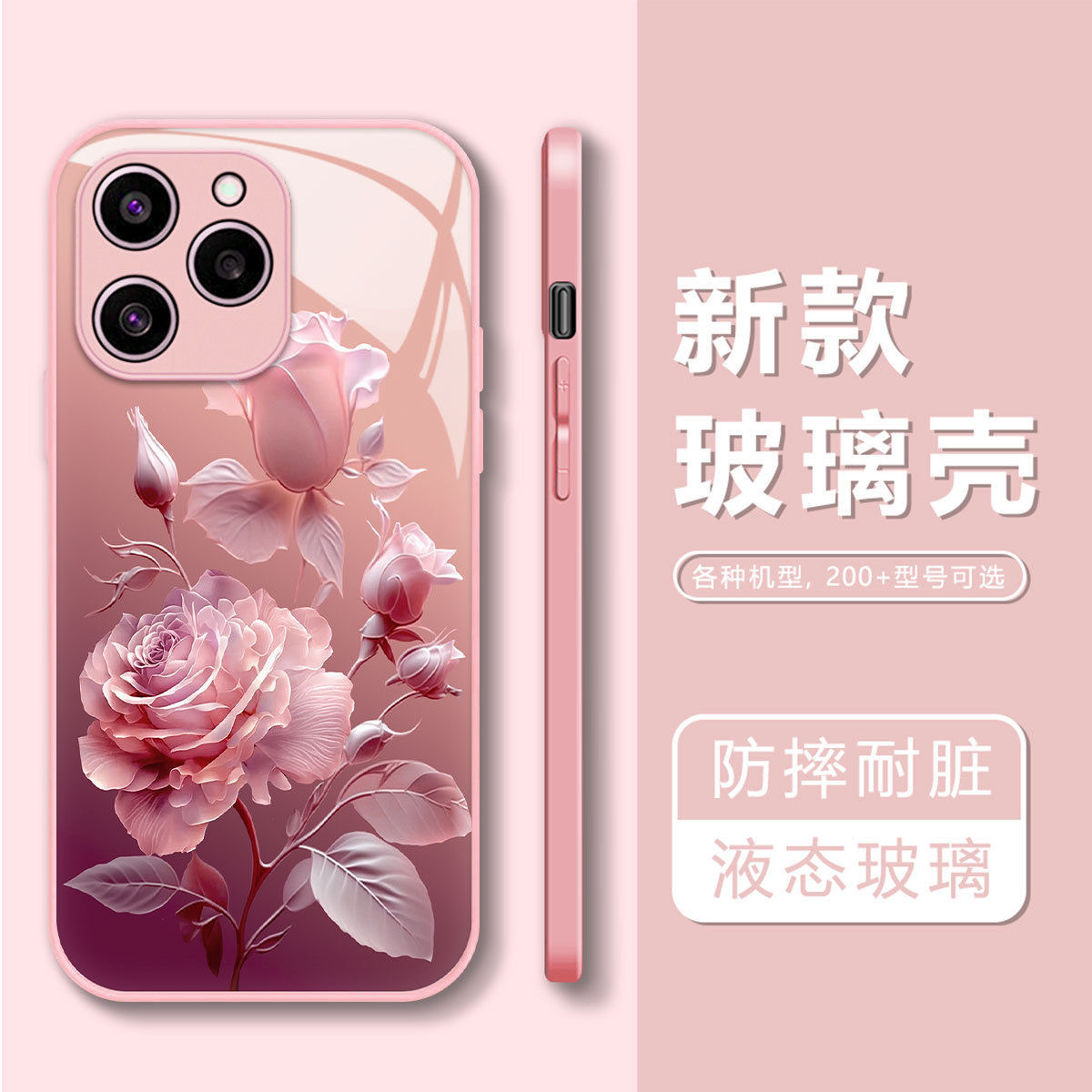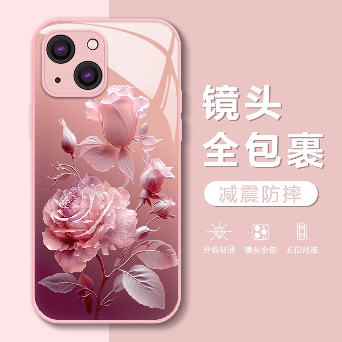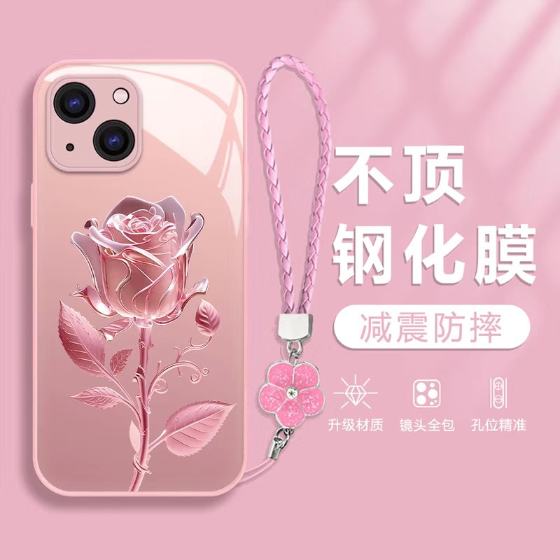 핑크 로즈 휴대 전화 케이스 아이폰 15 울트라 새로운 아이폰 15Pro 유리 인스토어 가기