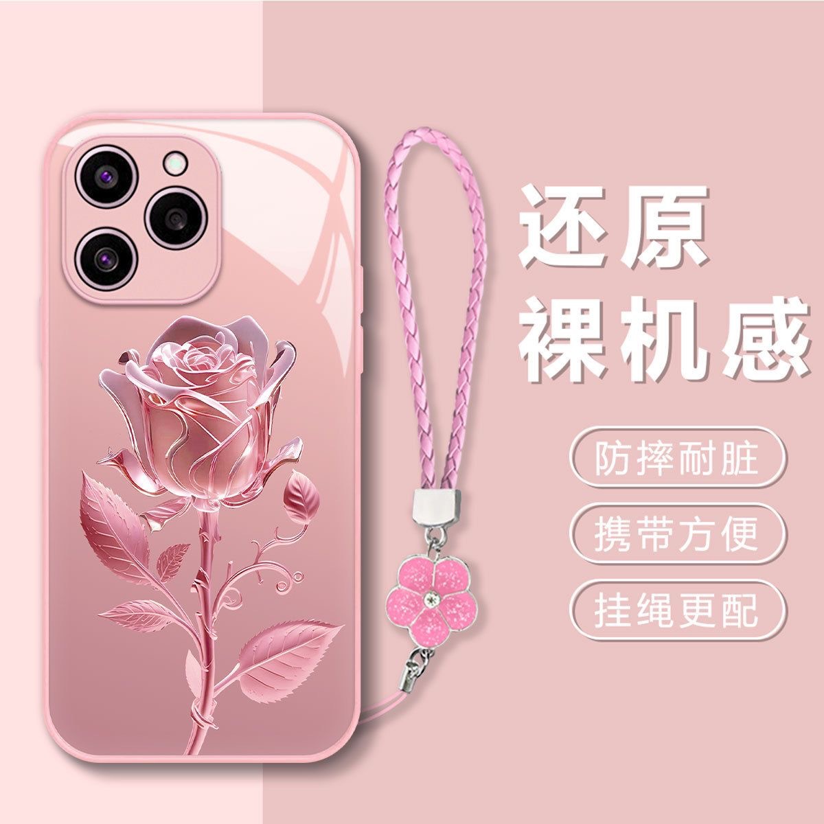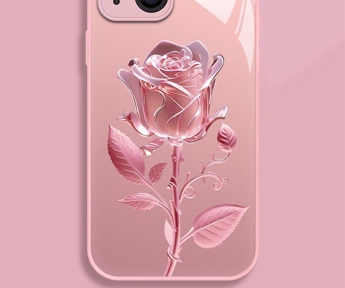 핑크 로즈 휴대 전화 케이스 아이폰 15 울트라 새로운 아이폰 15Pro 유리 인