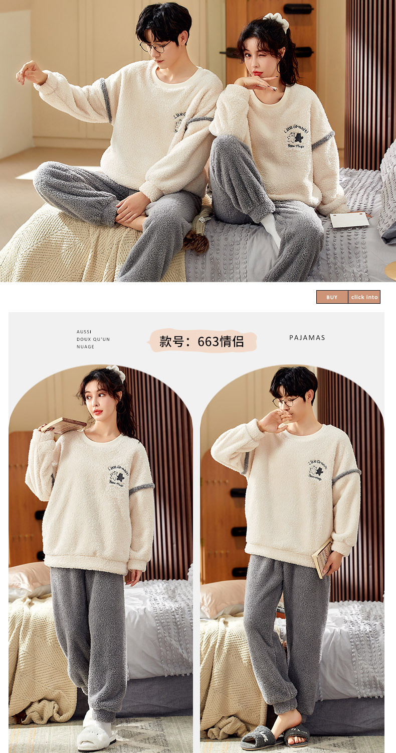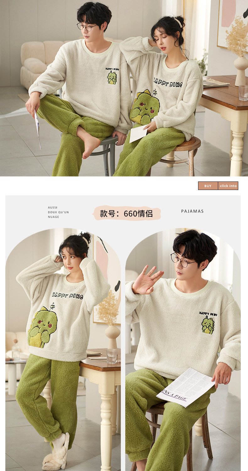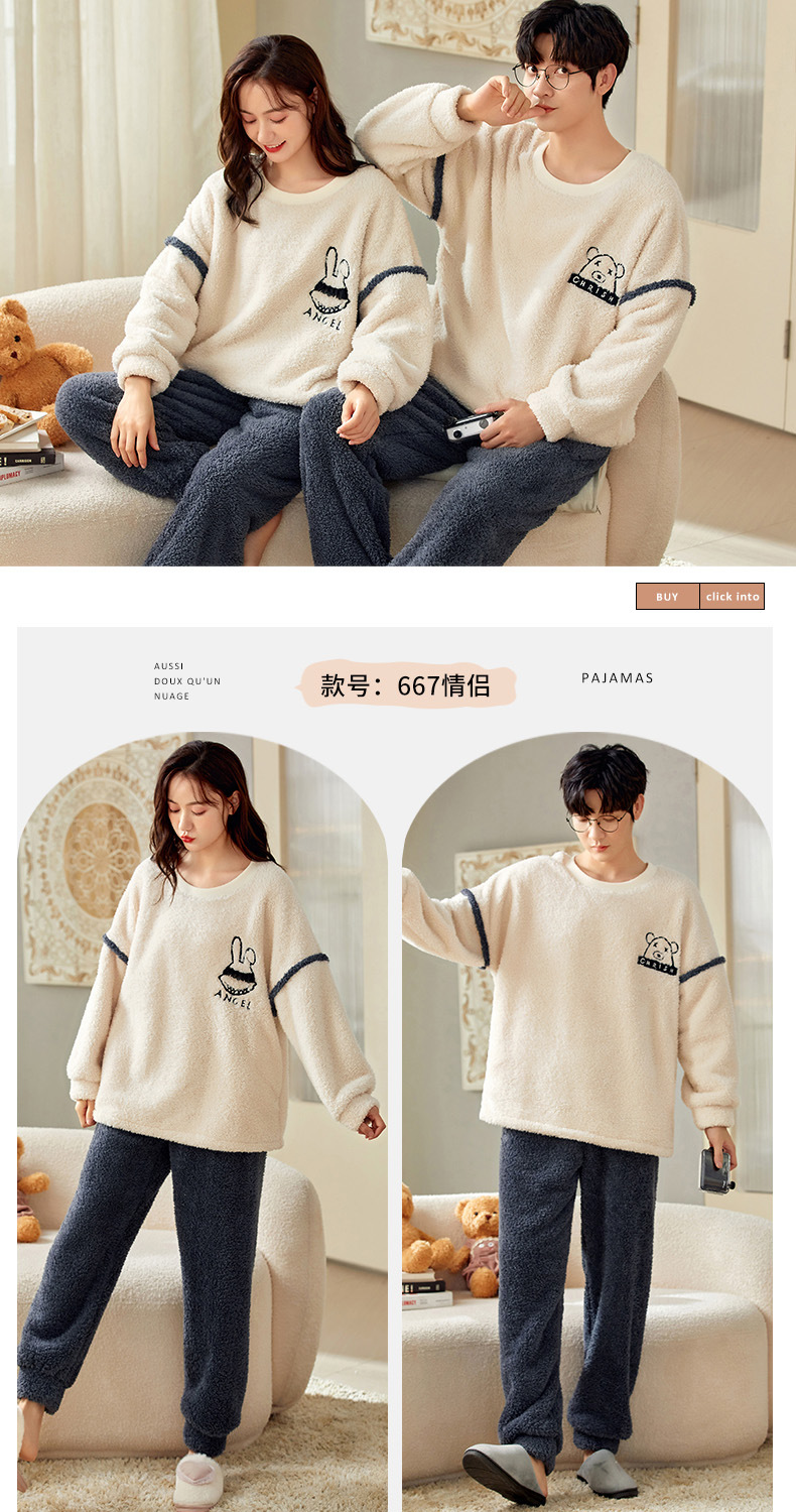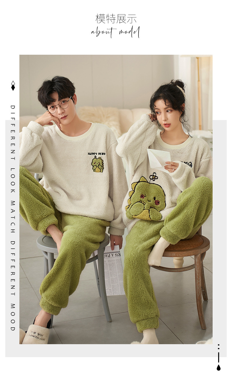 남성과 여성을위한 새로운 산호 양털 커플 잠옷 가을과 겨울 만화 기모 두꺼운 따뜻한 플란넬 가정 의류 세트스토어 가기