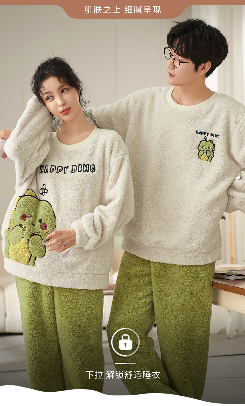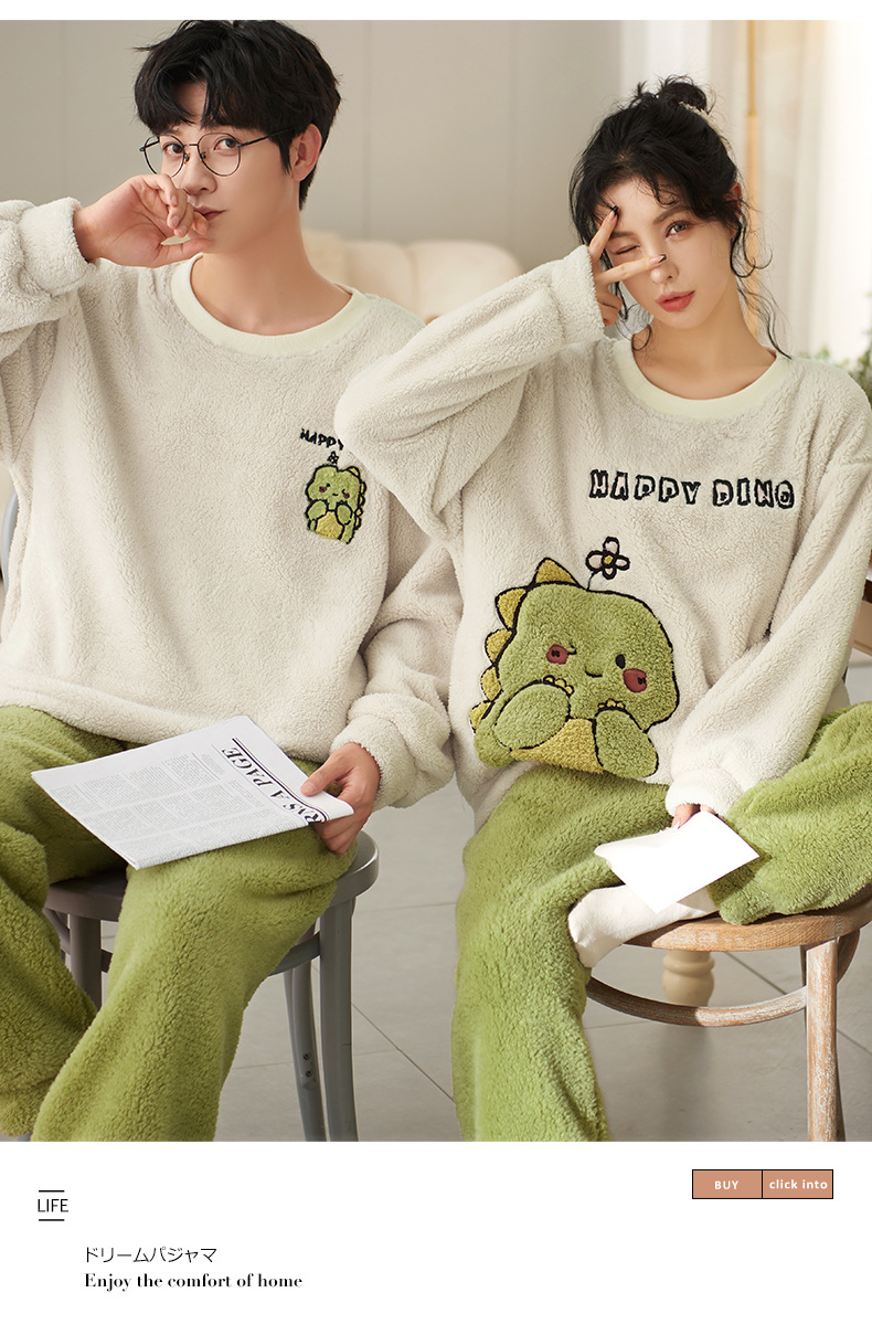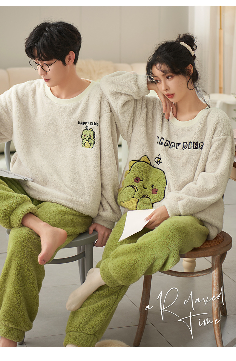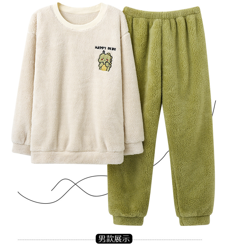 남성과 여성을위한 새로운 산호 양털 커플 잠옷 가을과 겨울 만화 기모 두꺼운 따뜻한 플란넬 가정 의류 세트