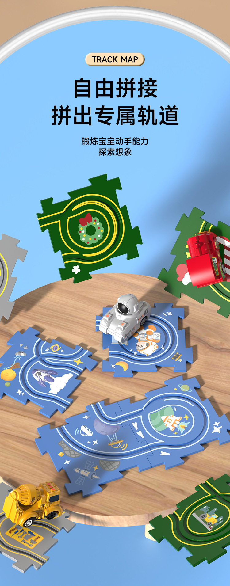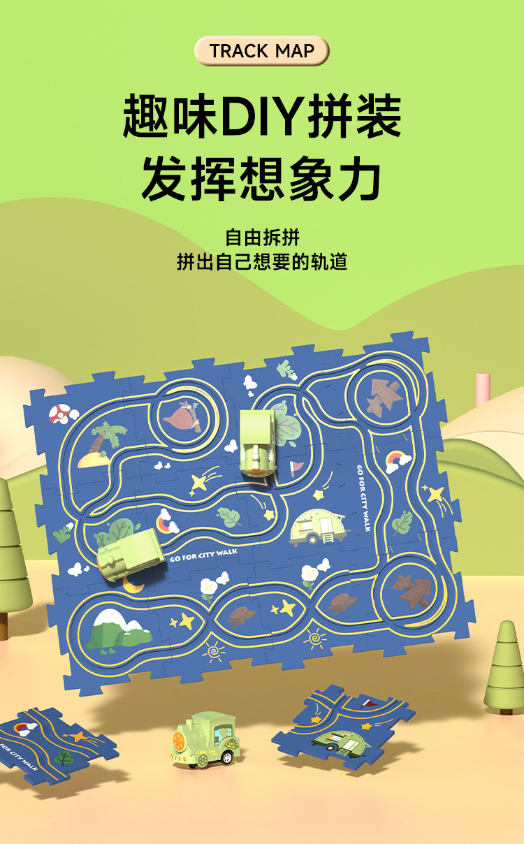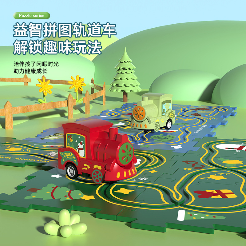 어린이 퍼즐 전기 직소 퍼즐 레일 자동차 DIY 도시지도 장면 건물 소년 장난감 도매스토어 가기